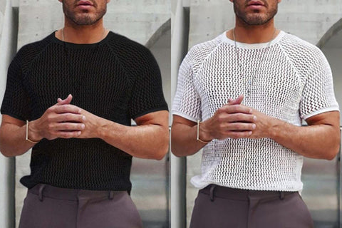 Men’s casual round neck hollow short sleeved knitted T-shirt is an integral part of any wardrobe worth its cloth. Crafted from