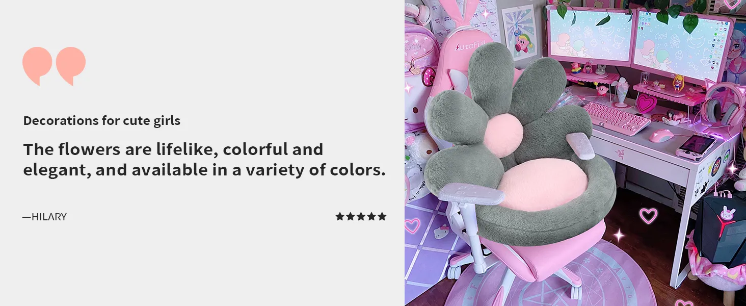 The unique flower shape adds a cute and kawaii aesthetic to your space, making it perfect for gaming rooms, bedrooms, or any cozy corner. Its playful design appeals to pet lovers and gamers alike, blending style and comfort in one charming cushion.