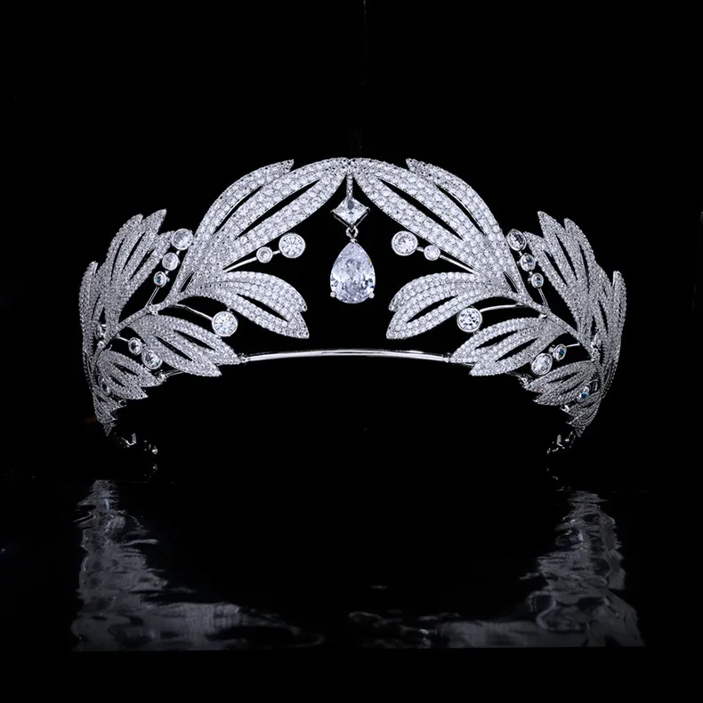 Royal Vintage Laurel Leaf Big Crown Bridal Zircon Crown