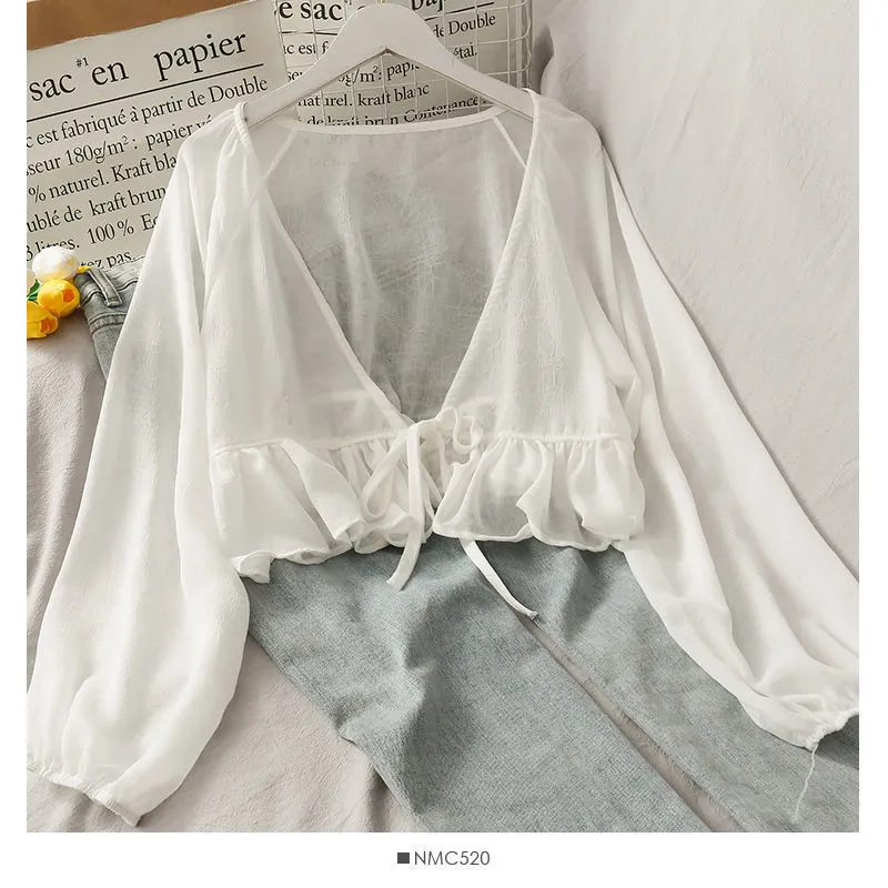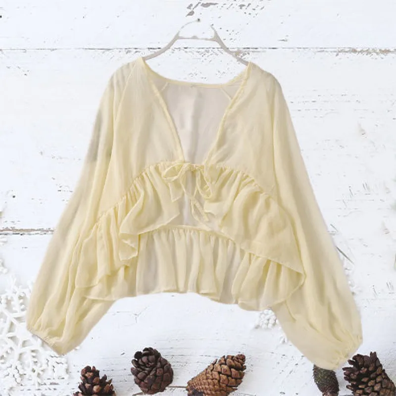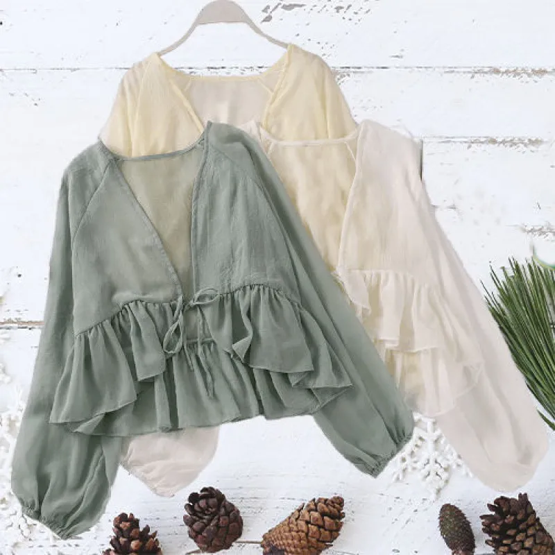 Ruffled Lace-up Sun Protection Clothing Cardigan Lantern Long Sleeve Outer Shawl