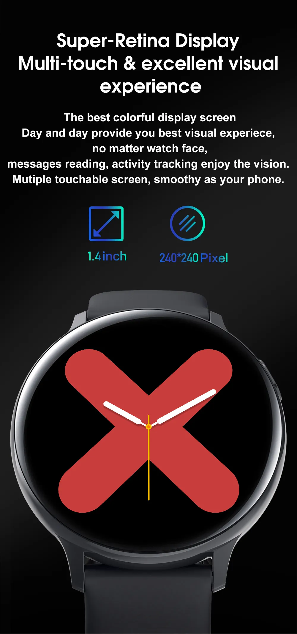The S20 Smart Watch offers a range of smart features including fitness tracking, health monitoring, message notifications, and customizable watch faces. Its responsive color touchscreen and durable build ensure an excellent user experience whether you're working out, at the office, or on the go.