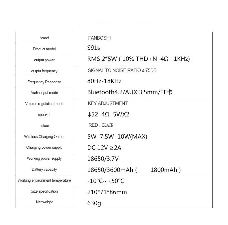 Audio input mode: Bluetooth 4.2 / auxiliary 3, 5mm / TF card