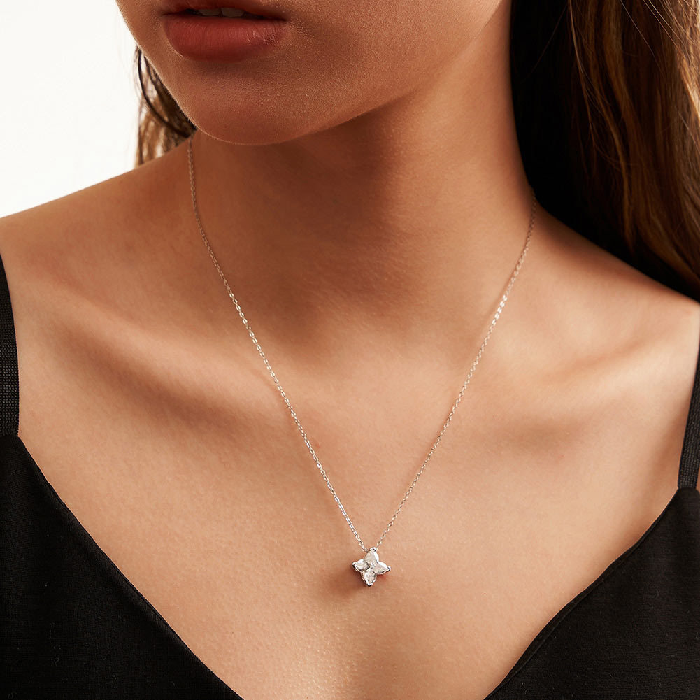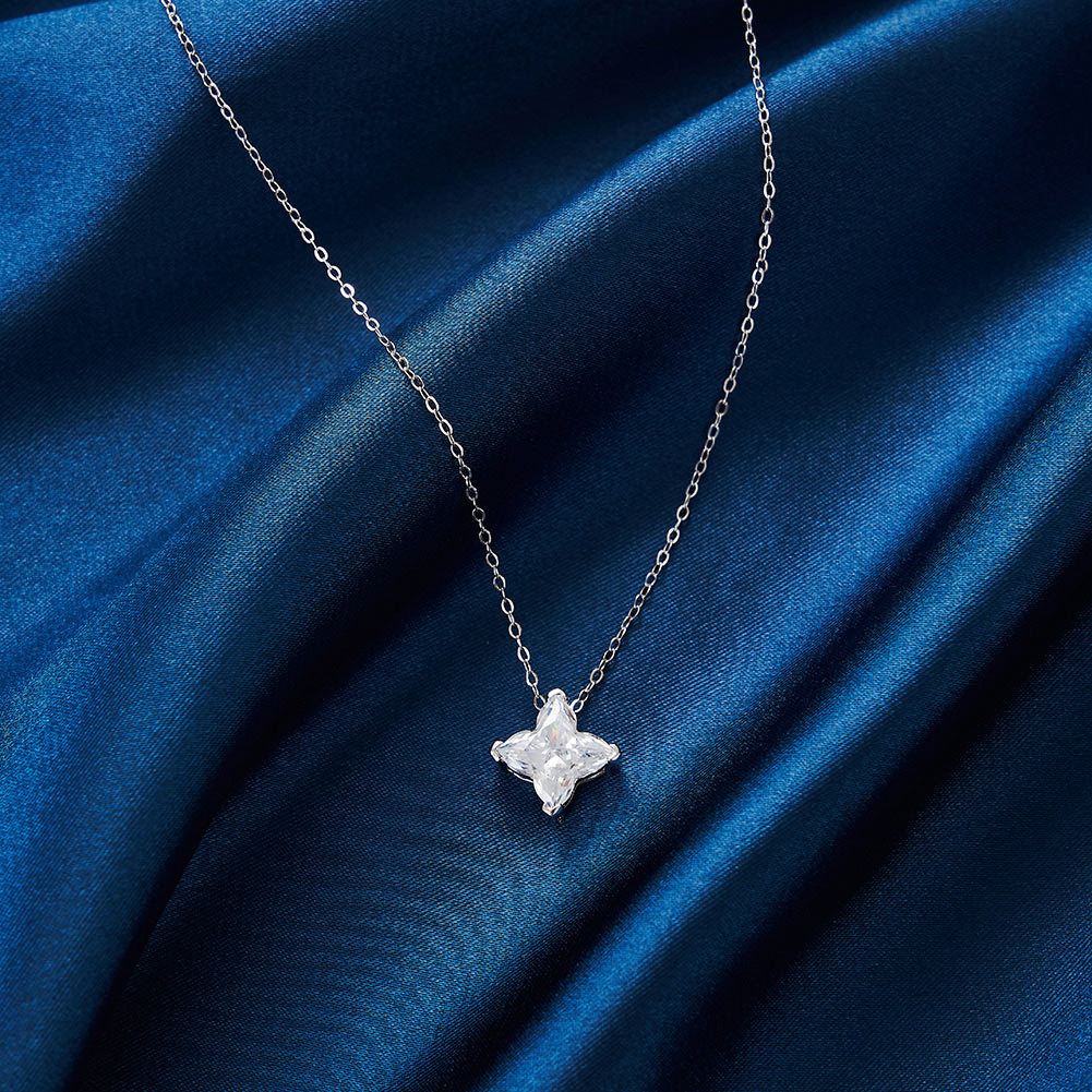 S925 Silver Cruciate Flower Star Cut Diamond Necklace - Elegant Pendant Jewelry