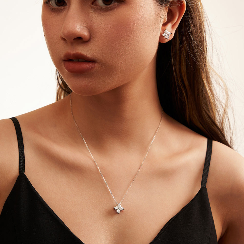 Add a touch of timeless elegance to your jewelry collection with our S925 Silver Cruciate Flower Star Cut Diamond Necklace, a stunning piece that beautifully combines classic design with modern sophistication. Crafted from high-quality S925 sterling silver, this necklace is designed for those who appreciate fine craftsmanship and the beauty of simplicity. The focal point of this exquisite piece is the star-cut diamond, set in a unique cruciate flower design that adds a distinctive flair to your ensemble.