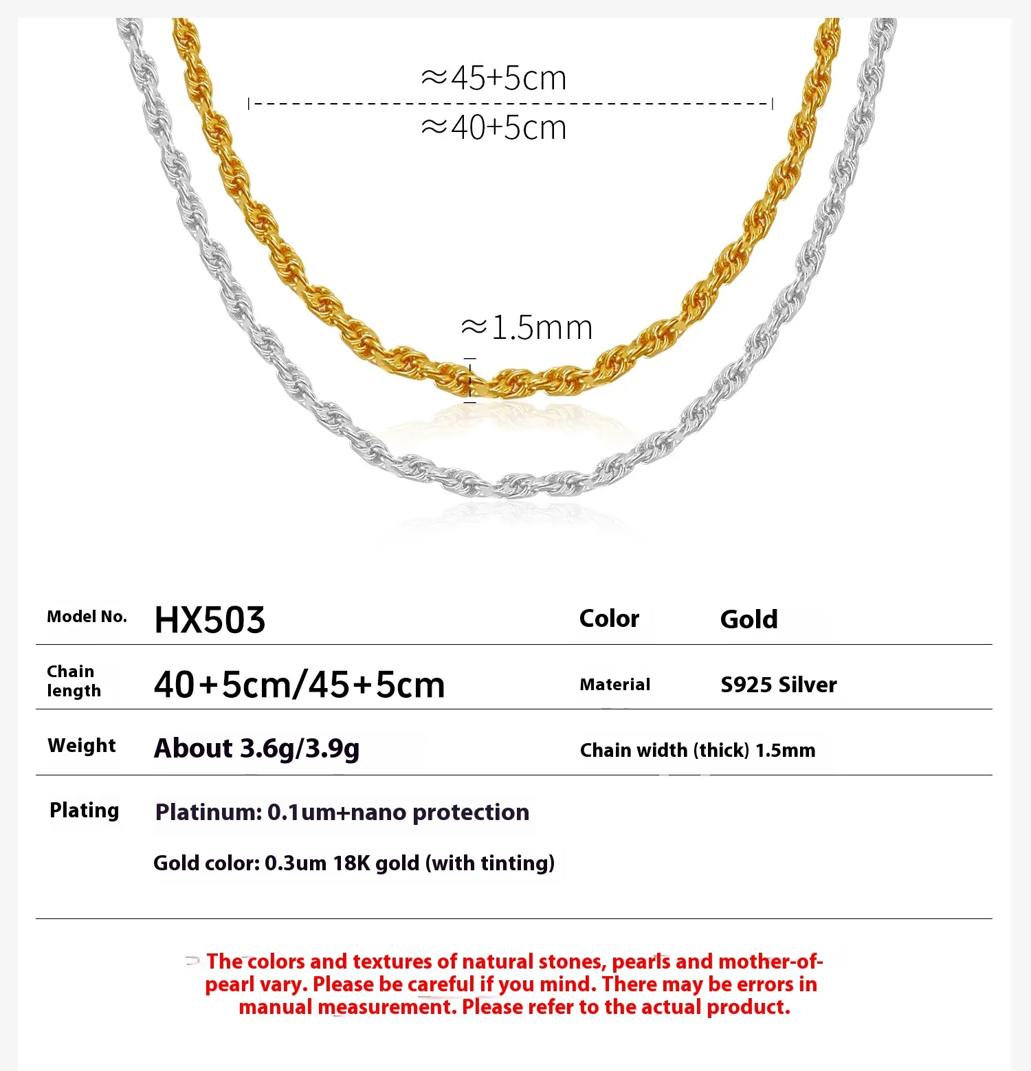 The S925 Silver Hemp Flowers Chain Necklace is made from S925 sterling silver, known for its durability, strength, and lasting shine. The addition of 18K gold plating enhances the piece’s beauty, providing it with a rich, golden hue that catches the light beautifully. This combination of high-quality materials ensures that the necklace retains its radiant finish and maintains its shape over time.