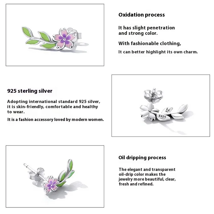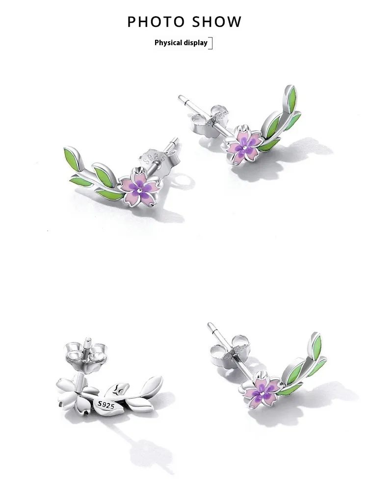 S925 Silver Jewelry Personalized Fashion Flower Leaves Sterling Silver Stud Earrings