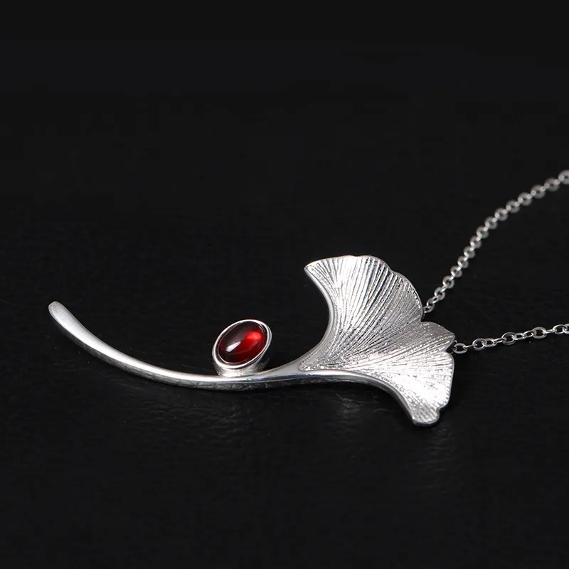 Home › Plants, Gifts, Toys & More › Gift-tree-s925-silver-leaf-inlaid-garnet-pendant