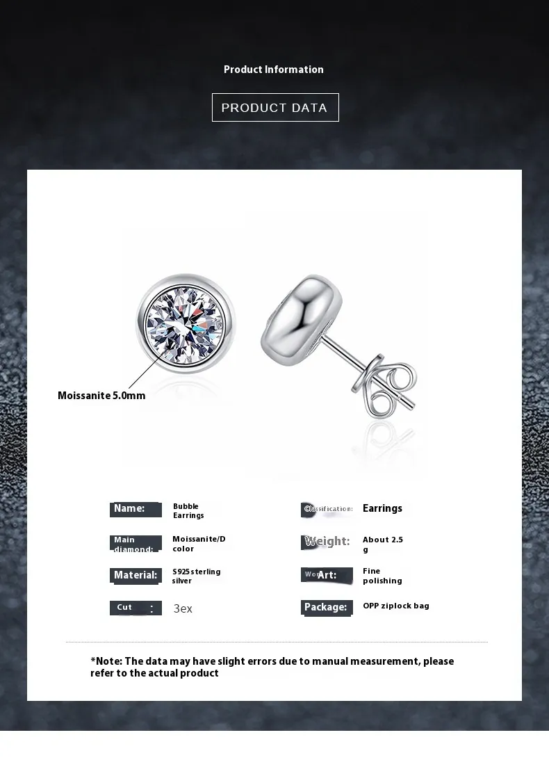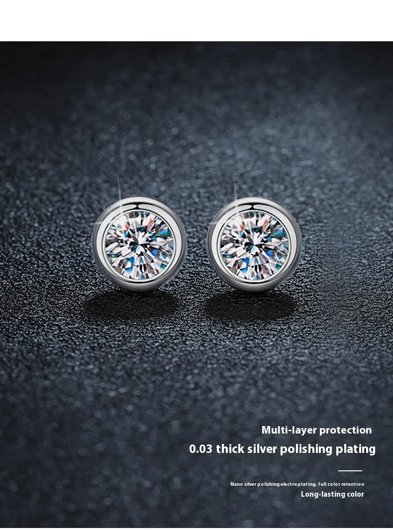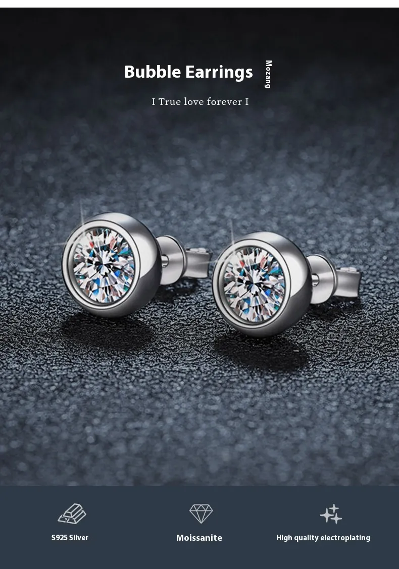 S925 Sterling Silver Classic Bubble Round Beads Moissanite Earrings