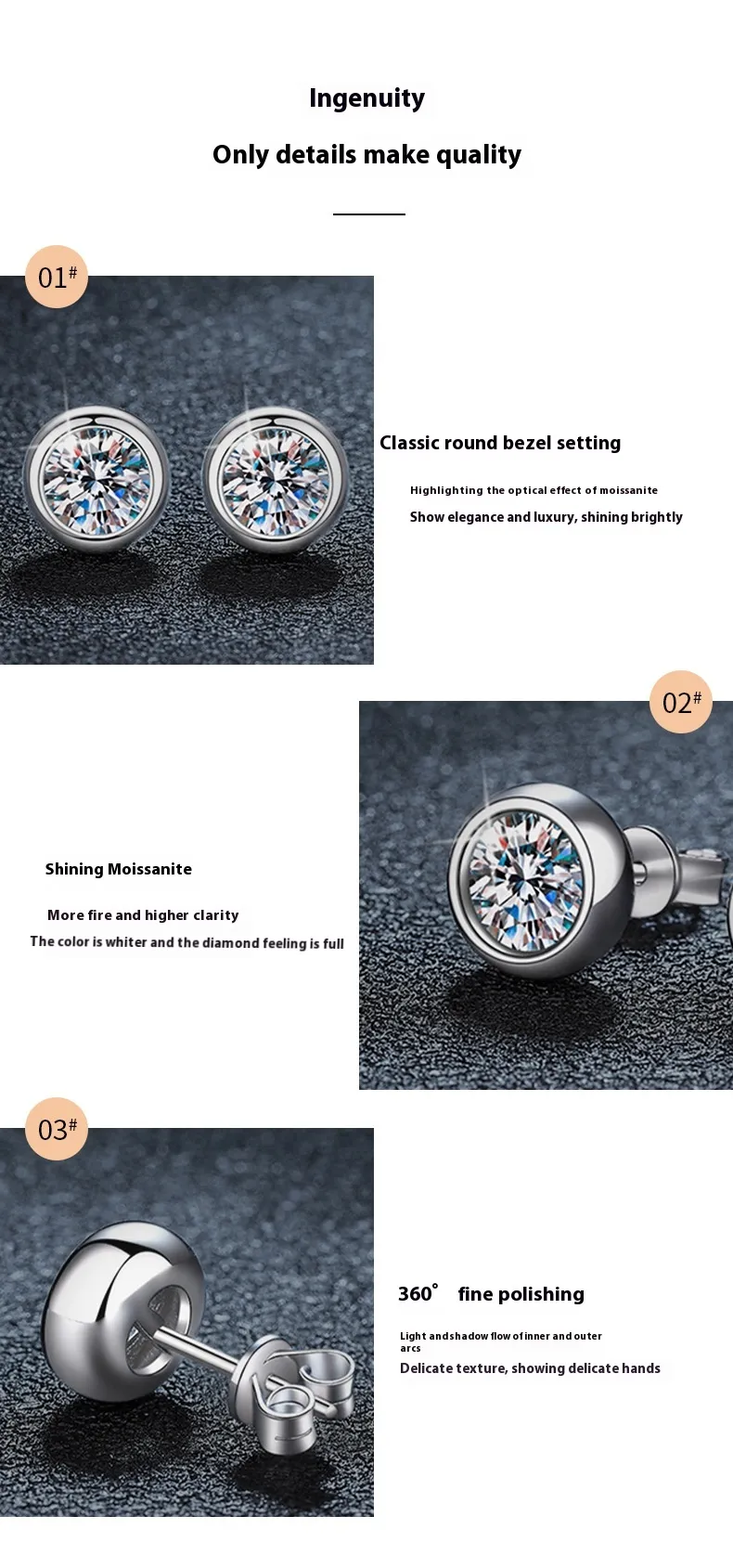 Color: 50 points moissanite (white gold color)