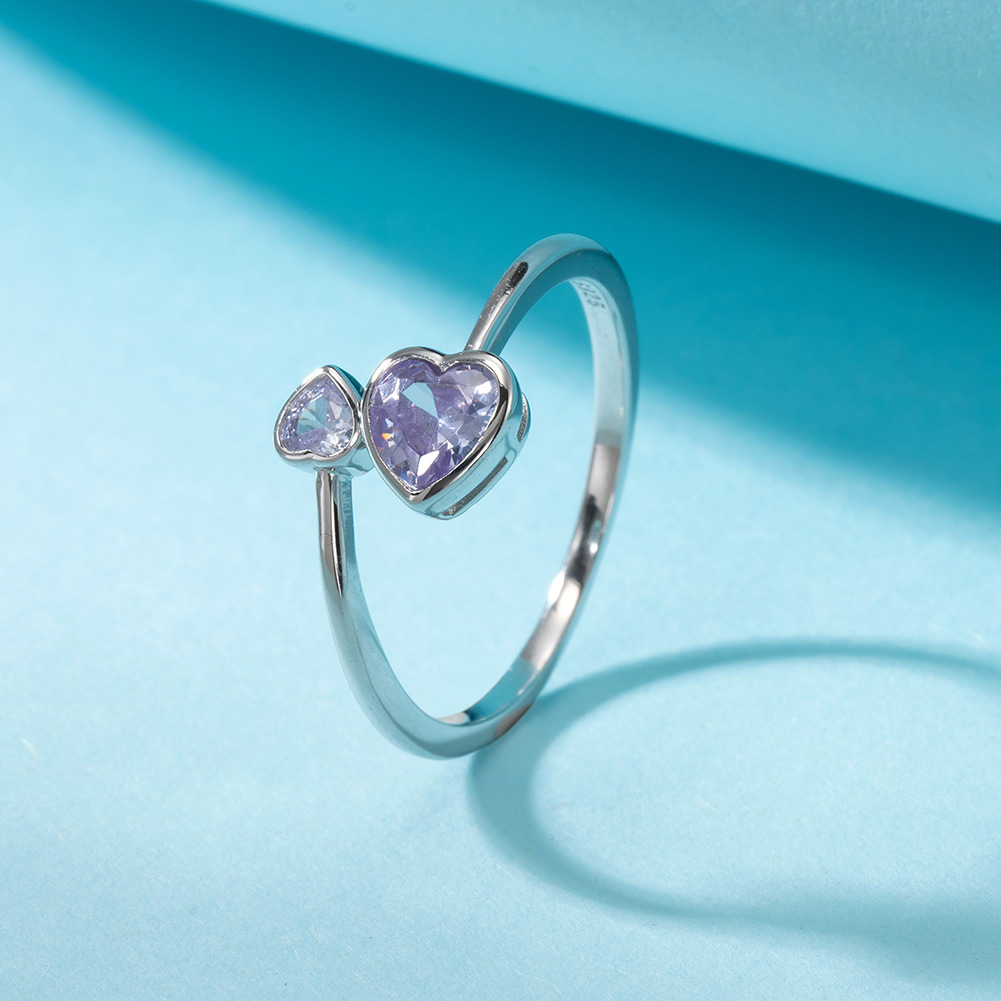 S925 Sterling Silver Double-headed Cute Loving Heart Zircon Ring - Adjustable in Twelve Colors