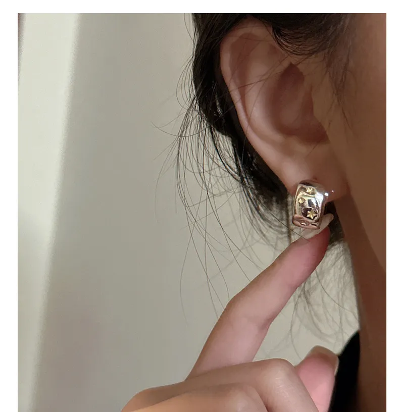 Features of S925 Sterling Silver Gold and Silver Contrast Color Xingx Earrings