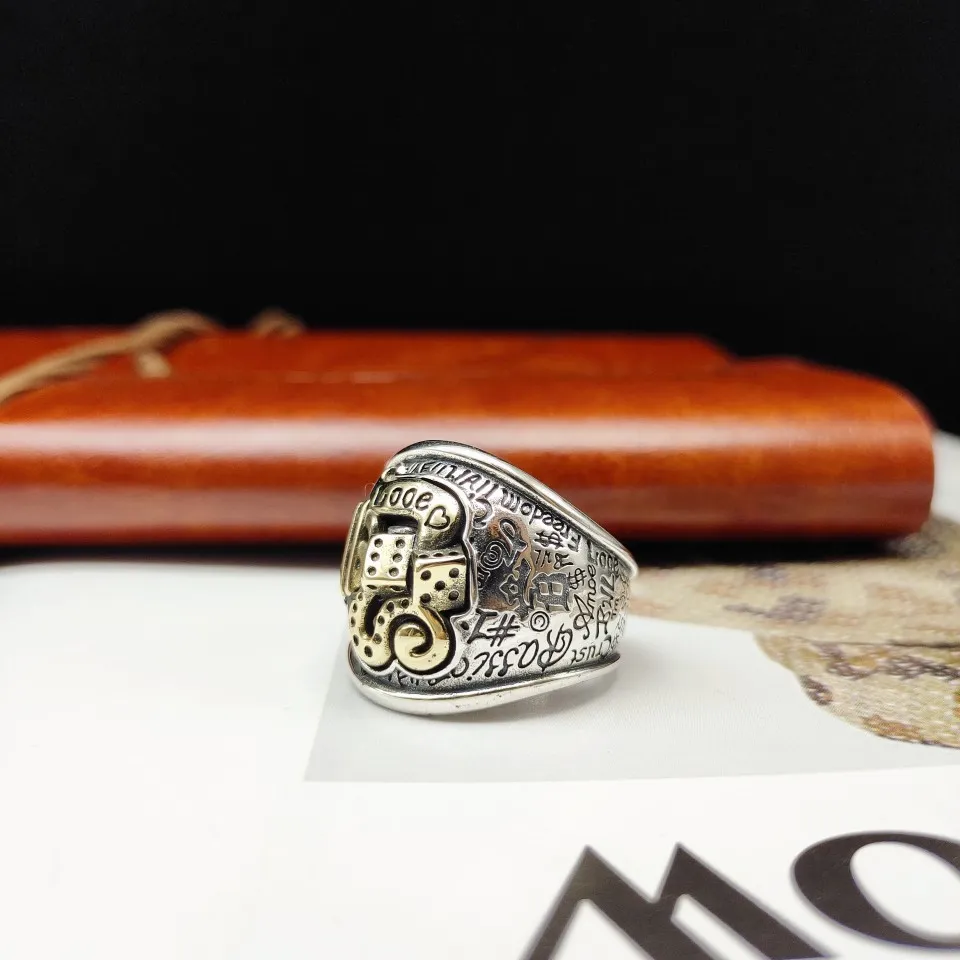 S925 Sterling Silver Hip-hop Street Graffiti Personalized Retro Ring