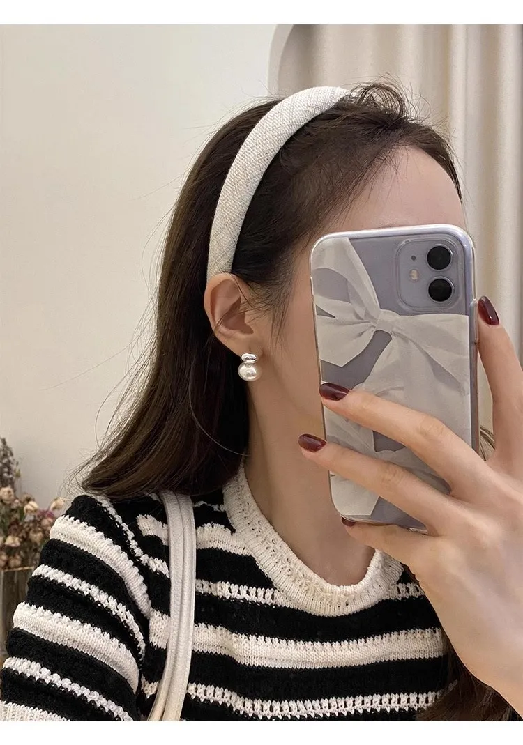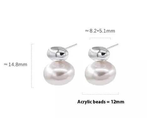 S925 Sterling Silver Oval Sliver Beads Artificial Pearl Earrings Women