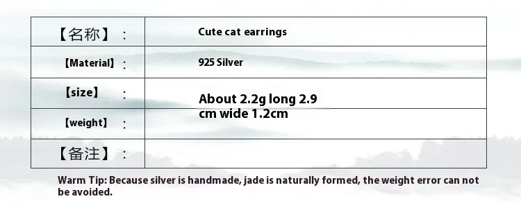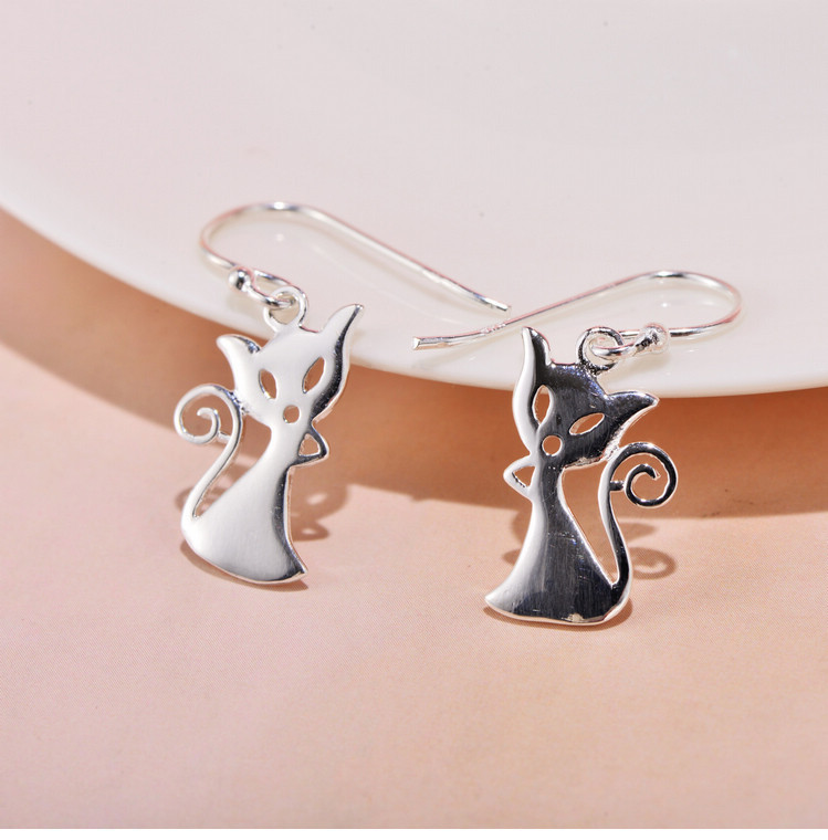 S925 Sterling Silver Simple And Stylish Personality Small Animal Cat Earrings