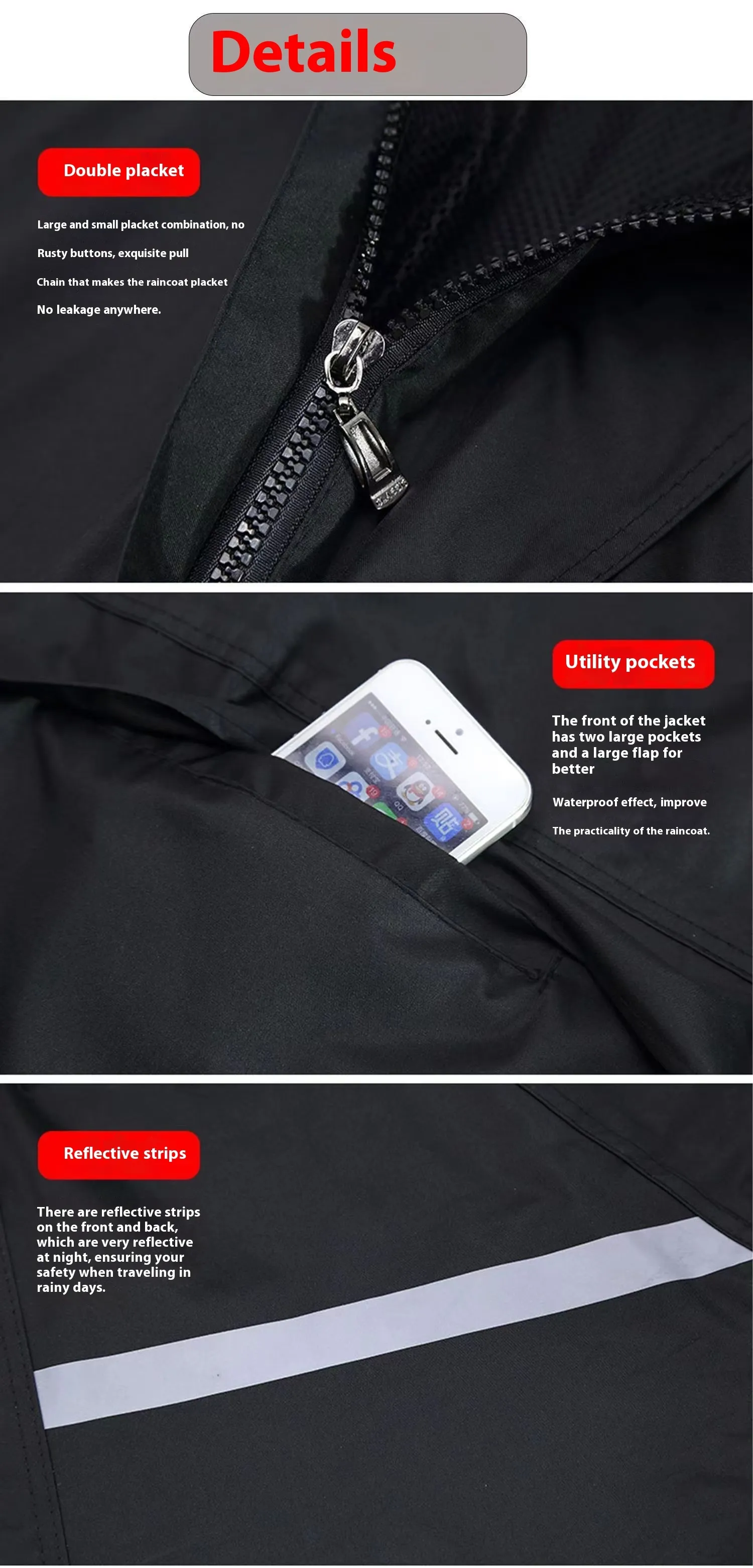 The raincoat's lightweight, breathable design ensures that you stay comfortable and well-ventilated, even during long motorcycle rides in rainy weather.