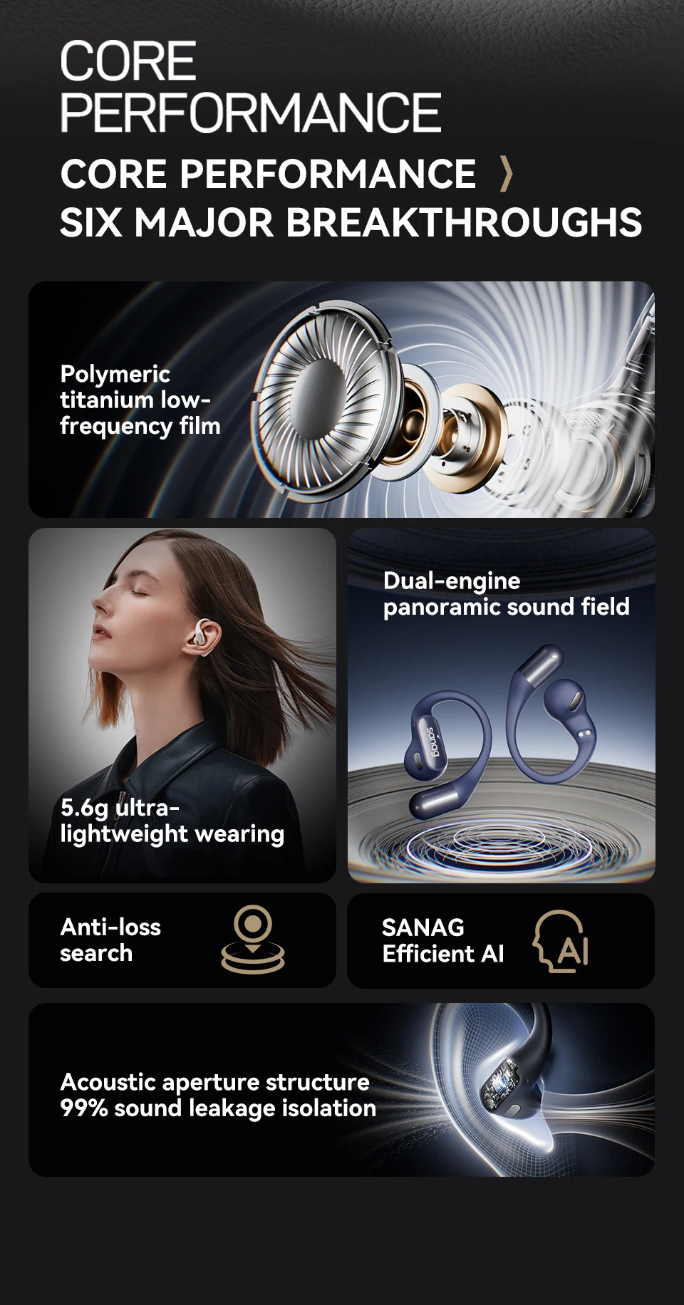 Sanag G6S Open Ear Bluetooth Earphone - HiFi Sound Sport Running Earbuds