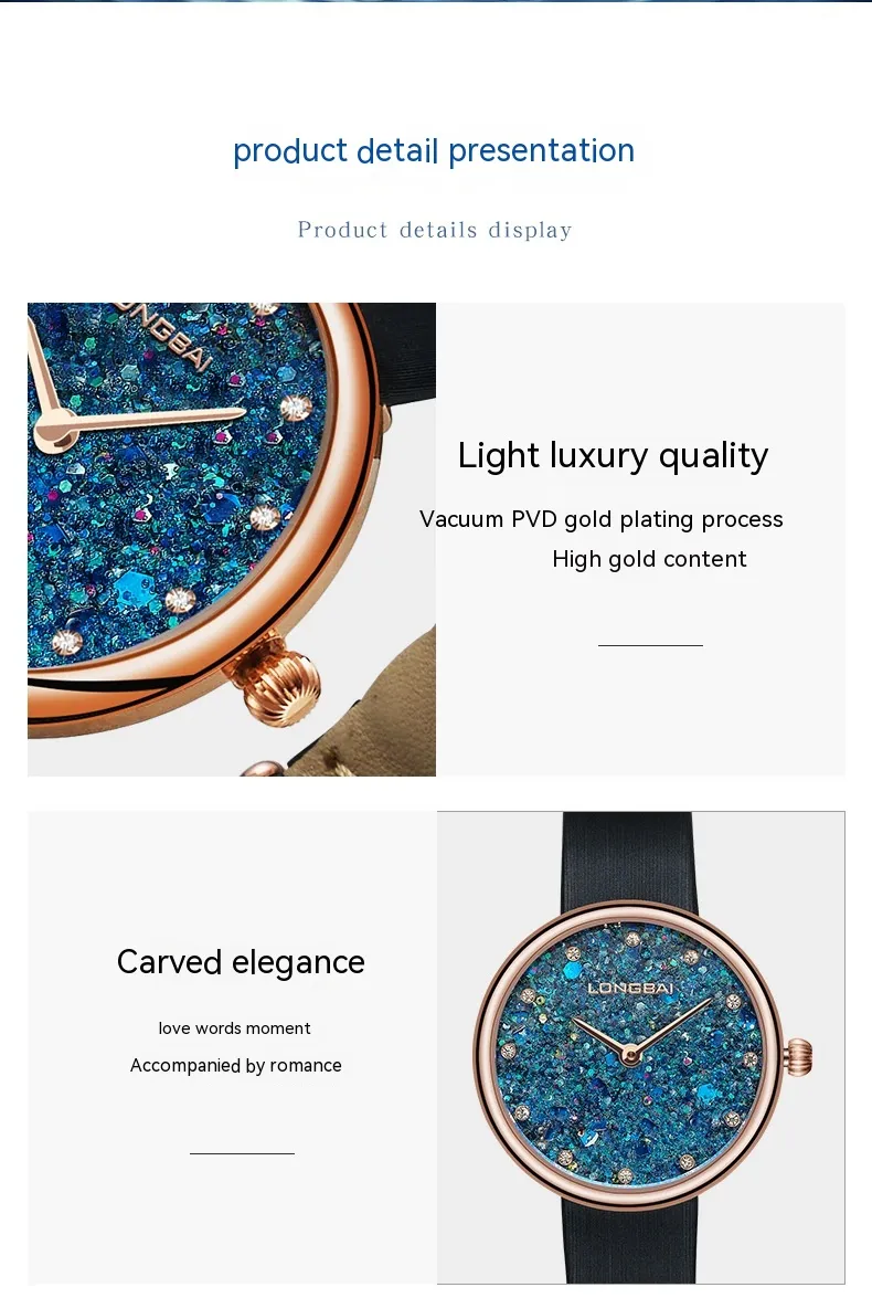 Indulge in subtle elegance with the Sapphire Simple and Natural Small Diamond Women's Watch, a perfect blend of minimalism and luxury. This beautifully crafted timepiece features a sapphire crystal face that offers exceptional clarity and scratch resistance, ensuring that it remains pristine for years to come. The minimalist design is elevated with delicate small diamond accents, providing just the right touch of sparkle without overwhelming its graceful simplicity. Ideal for both casual and formal wear, this watch effortlessly complements any outfit, making it a timeless accessory for modern women.