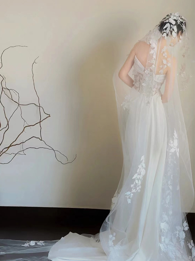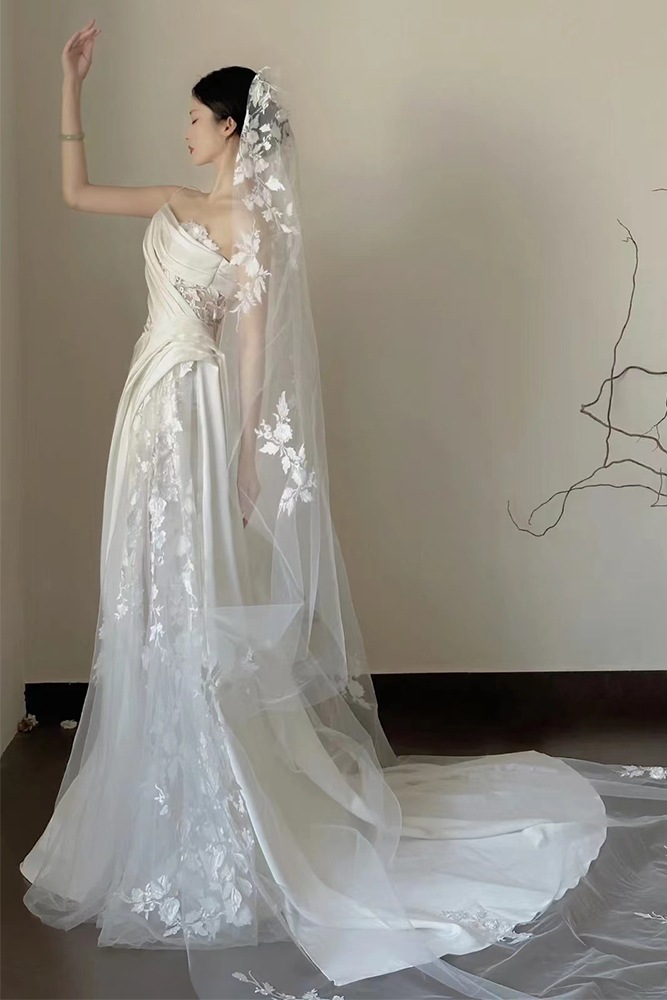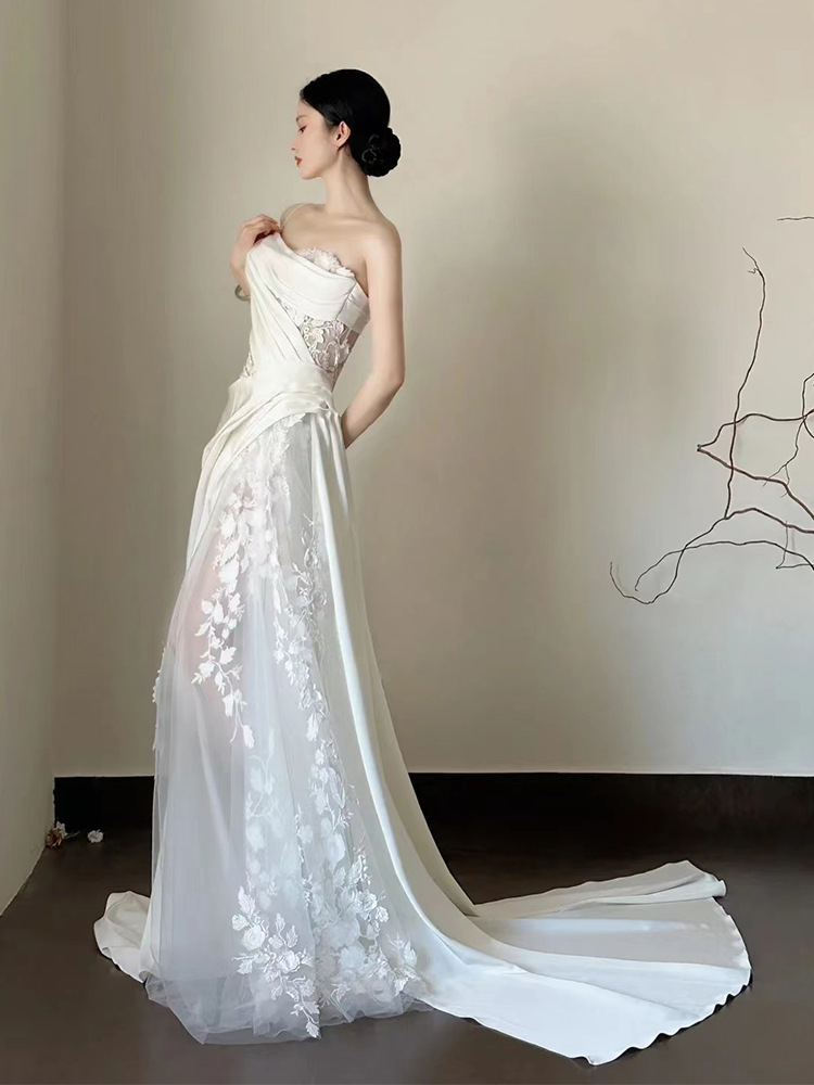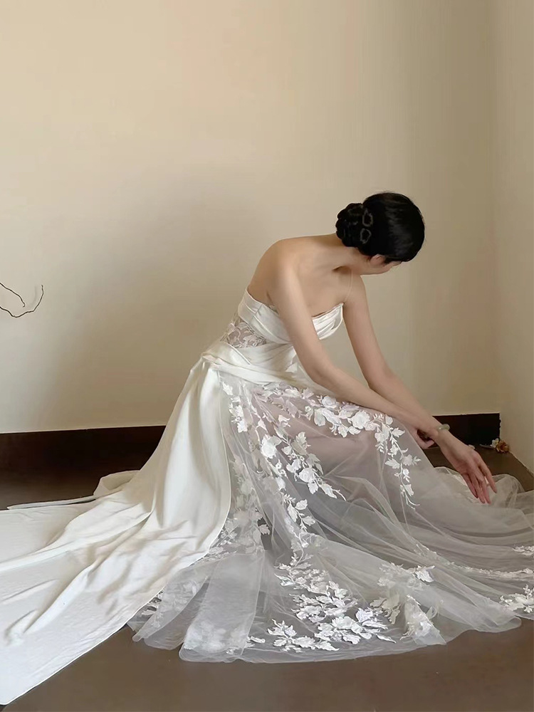 Satin Lace Wedding Veil Tube Top Fishtail Wedding Dress