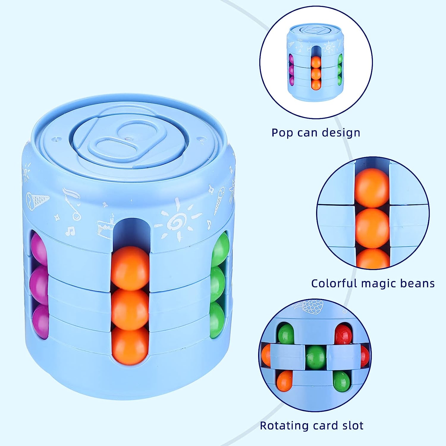 - The rotating toy can is elaborately designed with 3 layers and 6 columns of linkage space, there are 18 colored bean balls in total; Each color can be restored by pushing and rotating beads, the game is full of challenges by rotating one layer and linking multiple laye