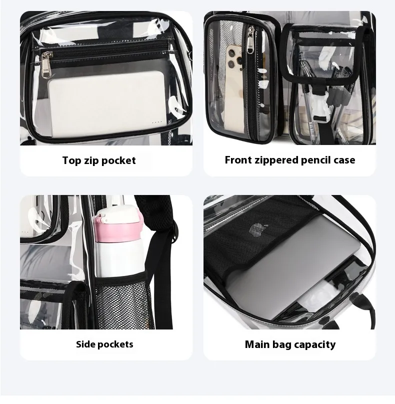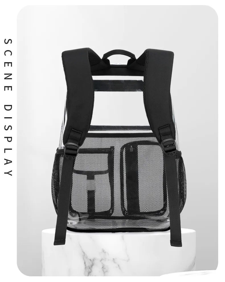 Take It Anywhere: Use your transparent backpack for school, travel, or events. Whether you’re headed to class or a concert,
