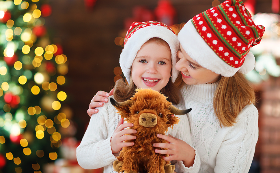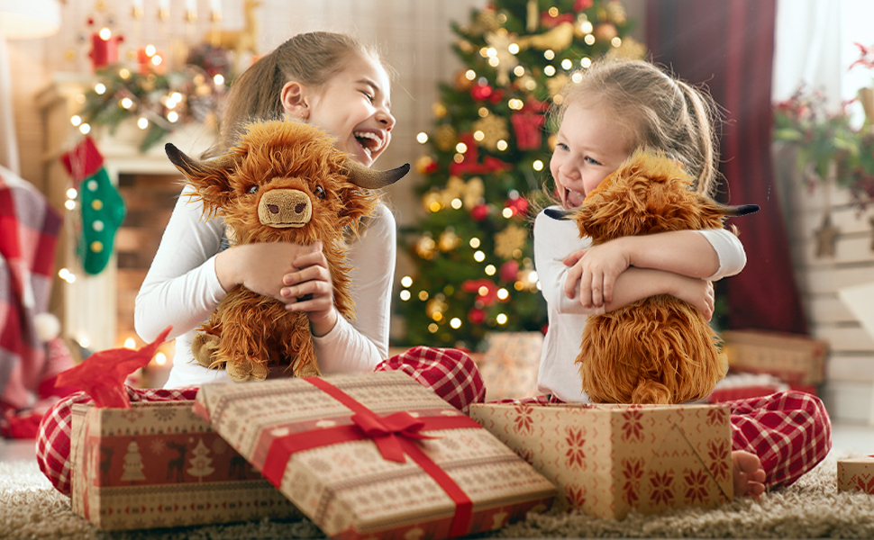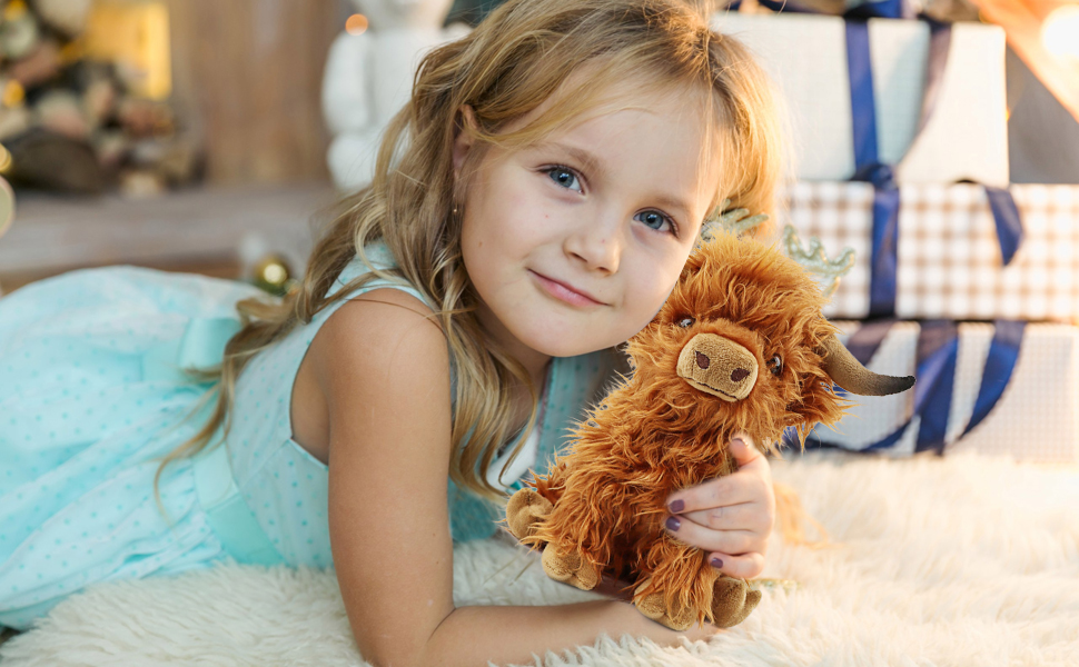- Surprise Present: The soft highland cows plush toy is super cute, present for Christmas, birthday, school season, anniversary, children's day, Valentine's day and other special holidays, give it to your adult girlfriend boy girl granddaughter niece and nephew, give them a surprise present.