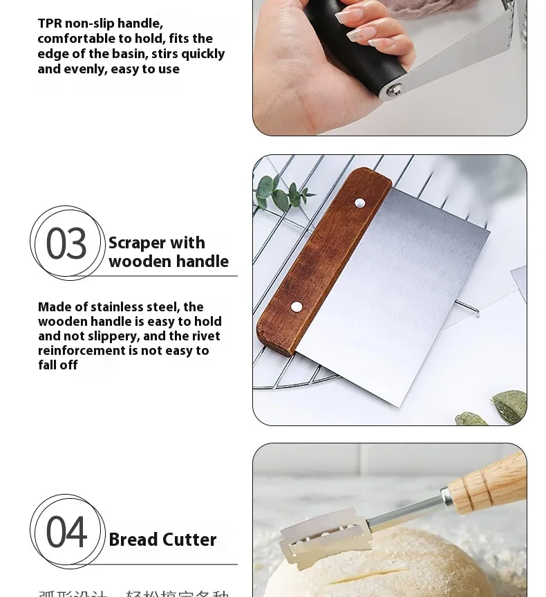 designed to handle various baking needs. From scraping sides to mixing ingredients thoroughly, this tool suit ensures your baking tasks are