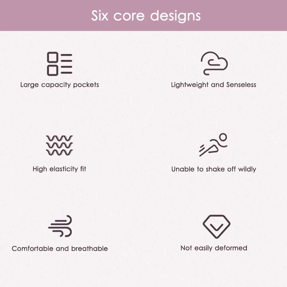 4. Convenient to use: A 360 ° surround large capacity pocket that can accommodate daily necessities such as water bottles, mobile phones, keys, headphones, membership cards, etc.