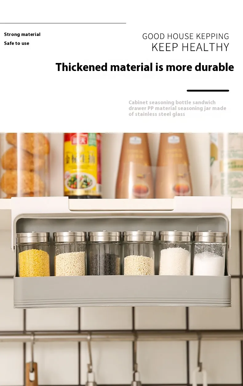 Adjustable Compartments: The rack accommodates a variety of bottle sizes, ensuring that you can organize your seasonings