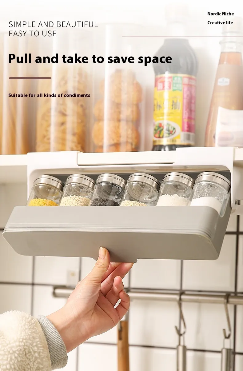 The Seasoning Bottle Kitchen Hanging Storage Rack is the perfect solution for keeping your kitchen organized and your spices easily accessible. Designed to save counter and cabinet space, this punch-free storage rack allows you to hang your seasoning bottles, ensuring that your favorite herbs, spices, and condiments are always within reach. Whether you're a home cook, a professional chef, or simply someone who enjoys a clutter-free kitchen, this kitchen gadget is an ideal choice to optimize your kitchen's storage and functionality.