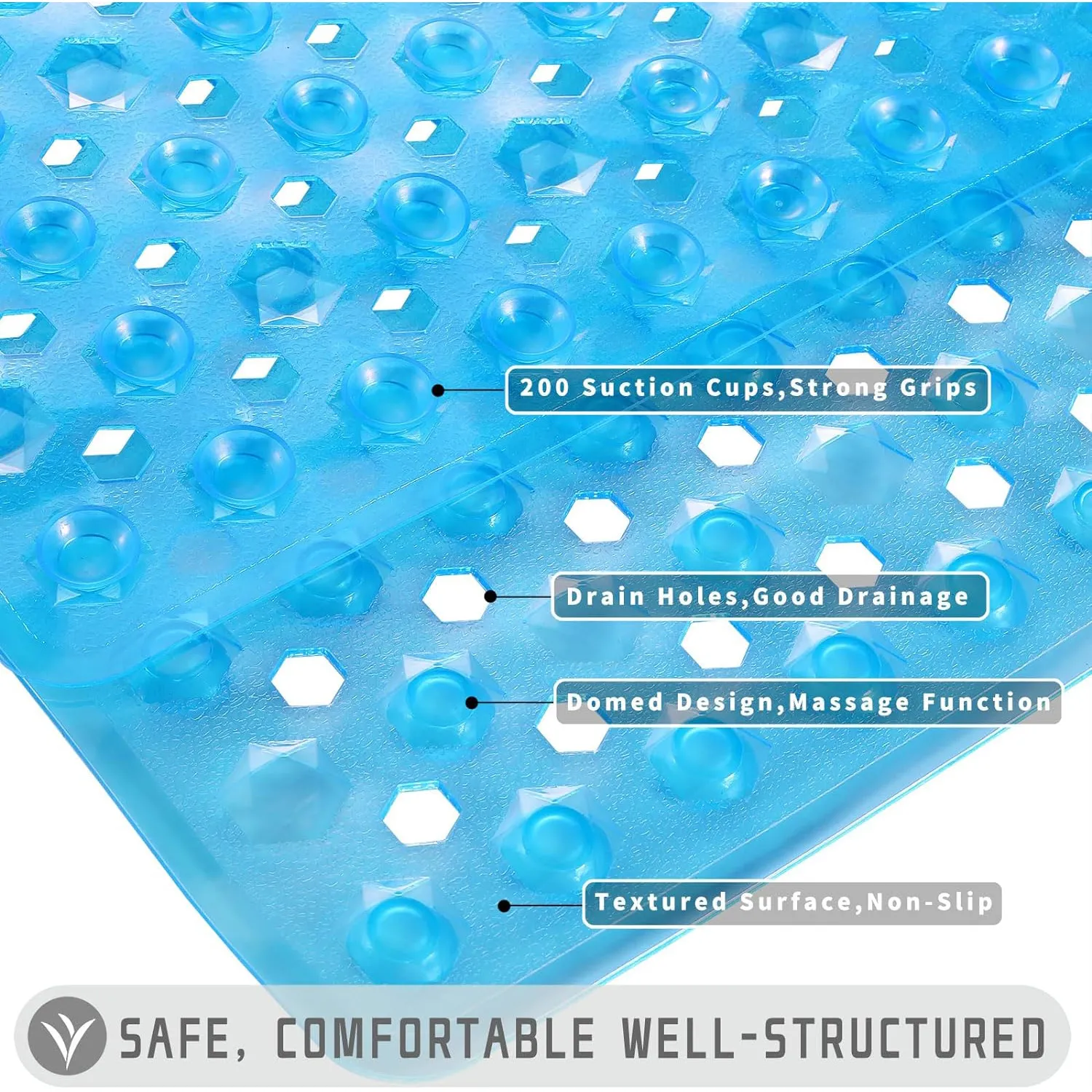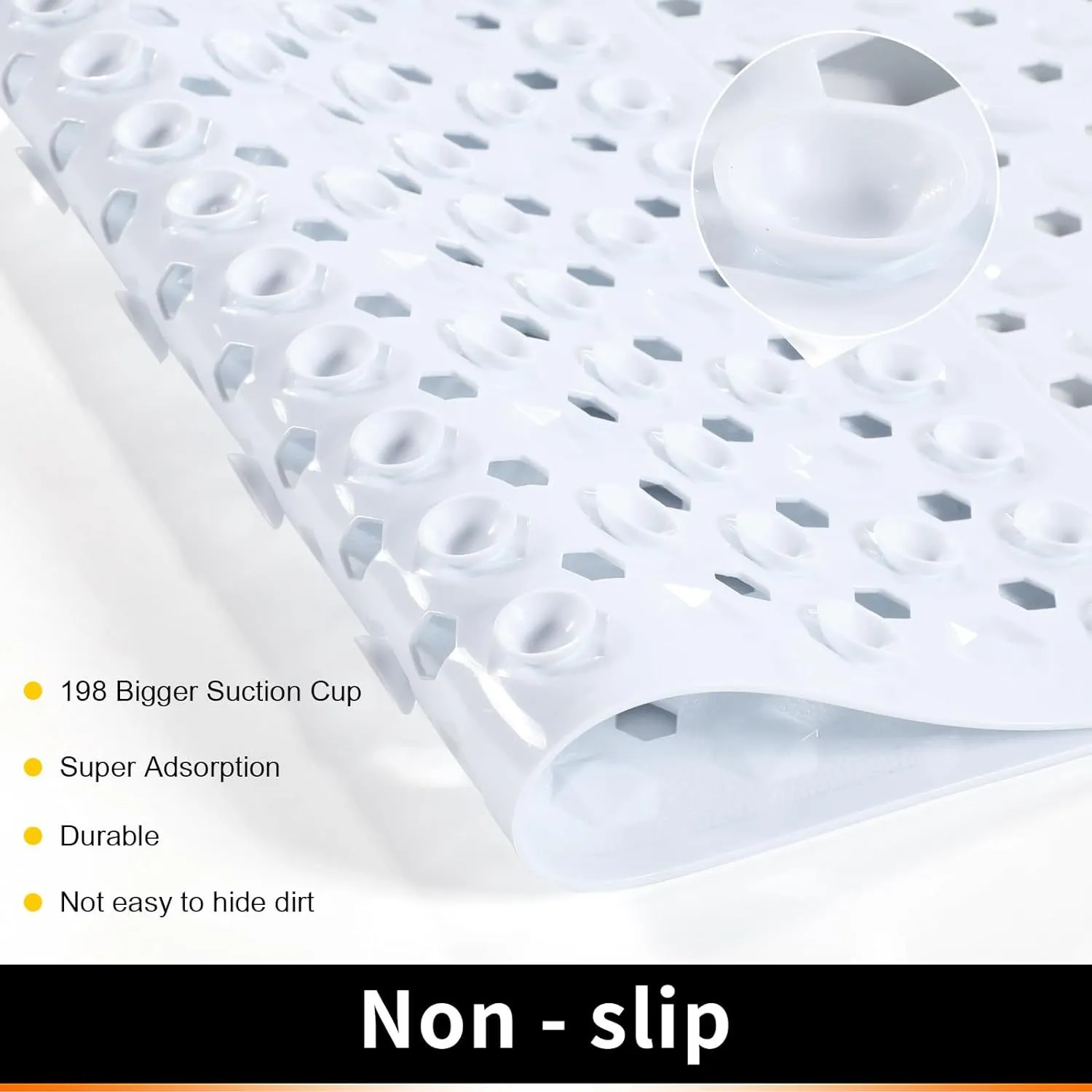 - PATENTED DESIGN WITH POWERFUL SUCTION GRIP: a bath mat designed to securely stay in place; this patented bathtub mat features hundreds of suction cups that effectively help secure the tub mat to your shower floor