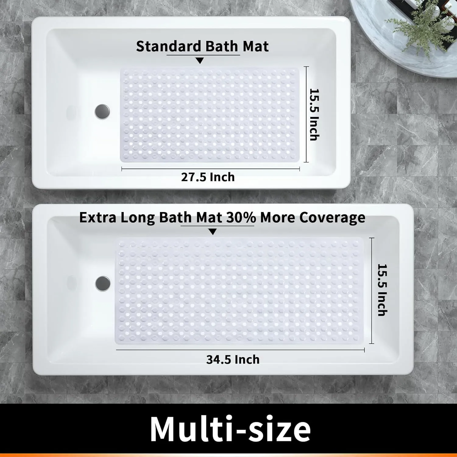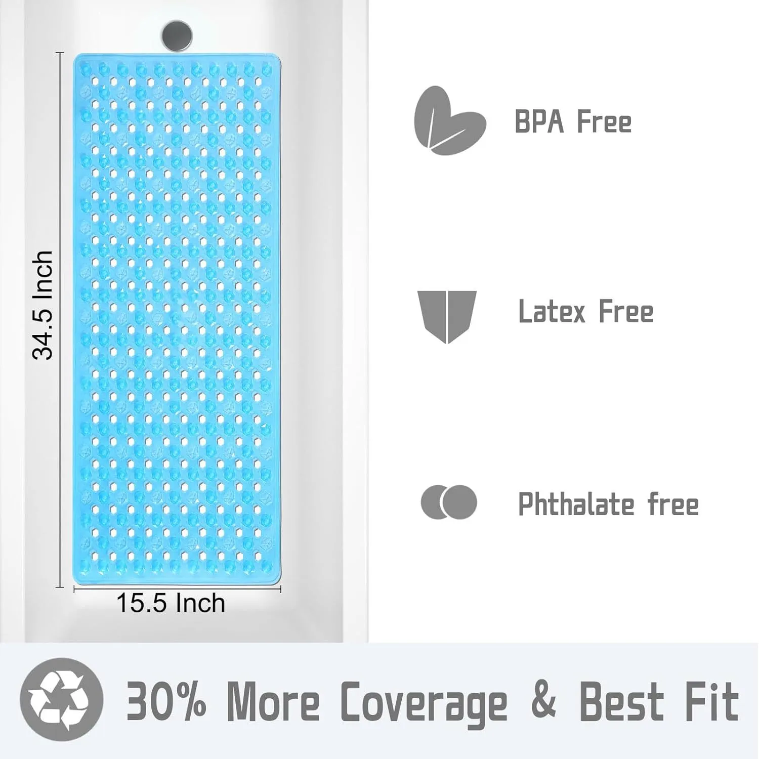 - OVERSIZED AND MACHINE WASHABLE: the shower floor mat is so easy to clean, simply machine wash and air dry; easily air dry the bath mat by hanging it over the side of the bath tub; generously sized bath mat for tub measures 35 by 16 inches, much larger and longer than other mats; providing excellent coverage for shower and bathtub floors