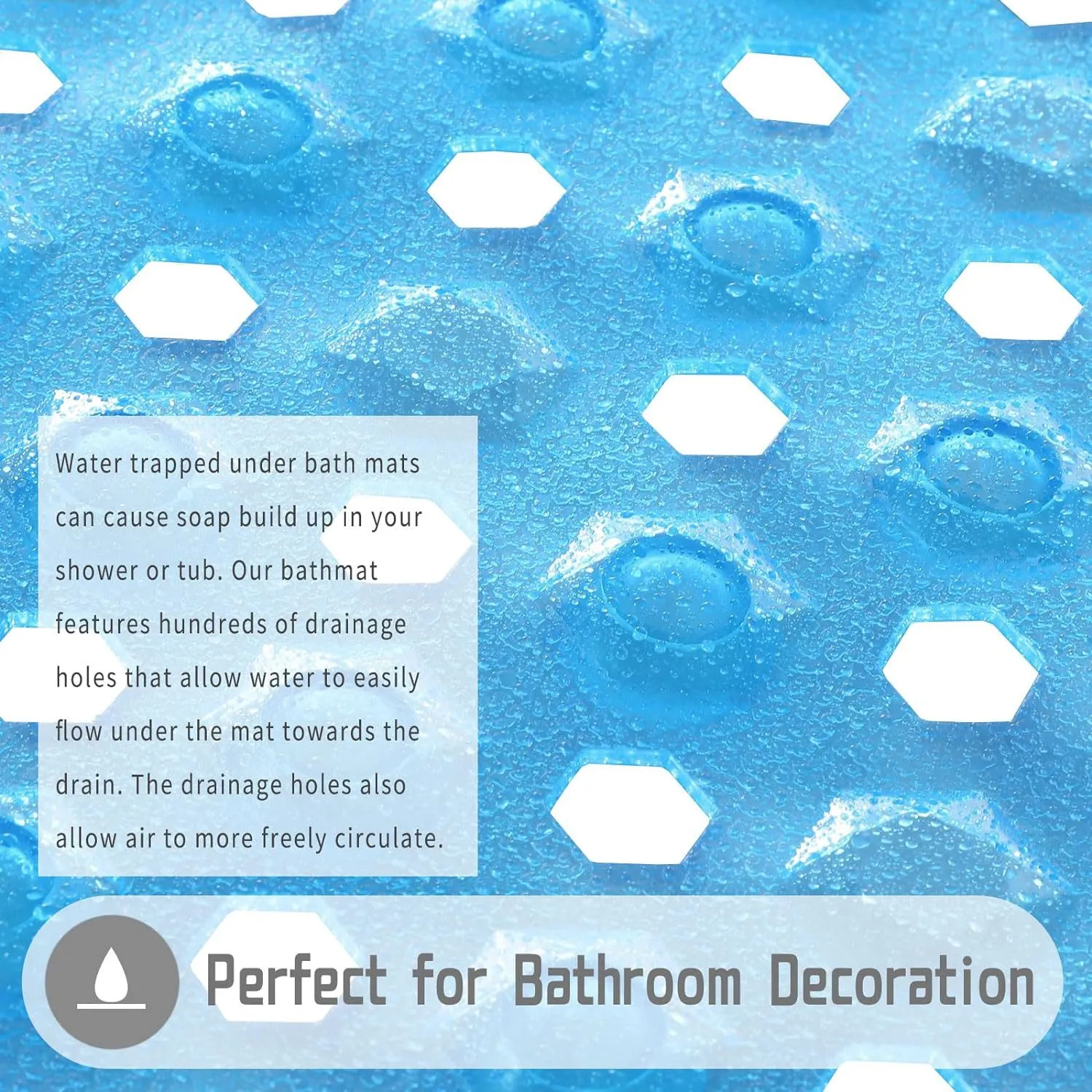 - EASY WATER DRAINAGE: hundreds of drainage holes allow for water to easily flow under the bath tub mat and toward the drain, helping to prevent water from sitting stagnant beneath the shower mat in your tub or shower