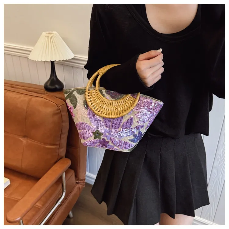 Unique Design: The Sequin Straw High-Grade Sense Niche Embroidered Bag stands out for its stunning