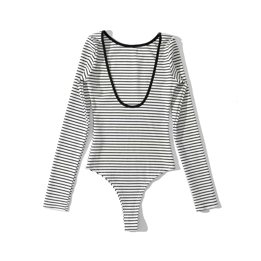 Sexy Big Back-Exposure Striped Tight Jumpsuit: Bold, Chic, and Trendy