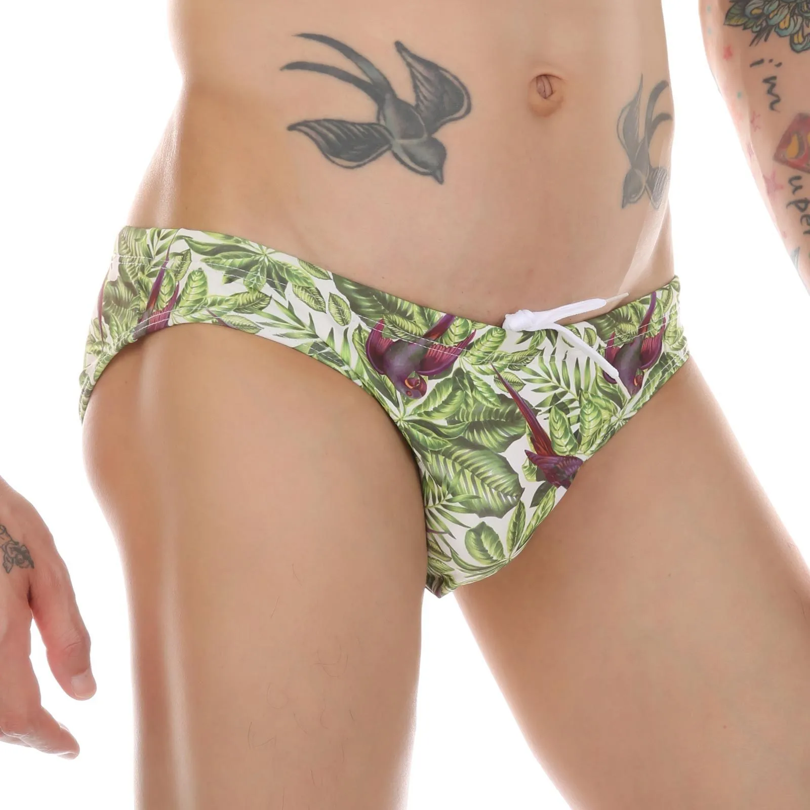 Eye-Catching Design: The tropical print of coconut and maple leaves makes these swimming trunks a standout piece, perfect