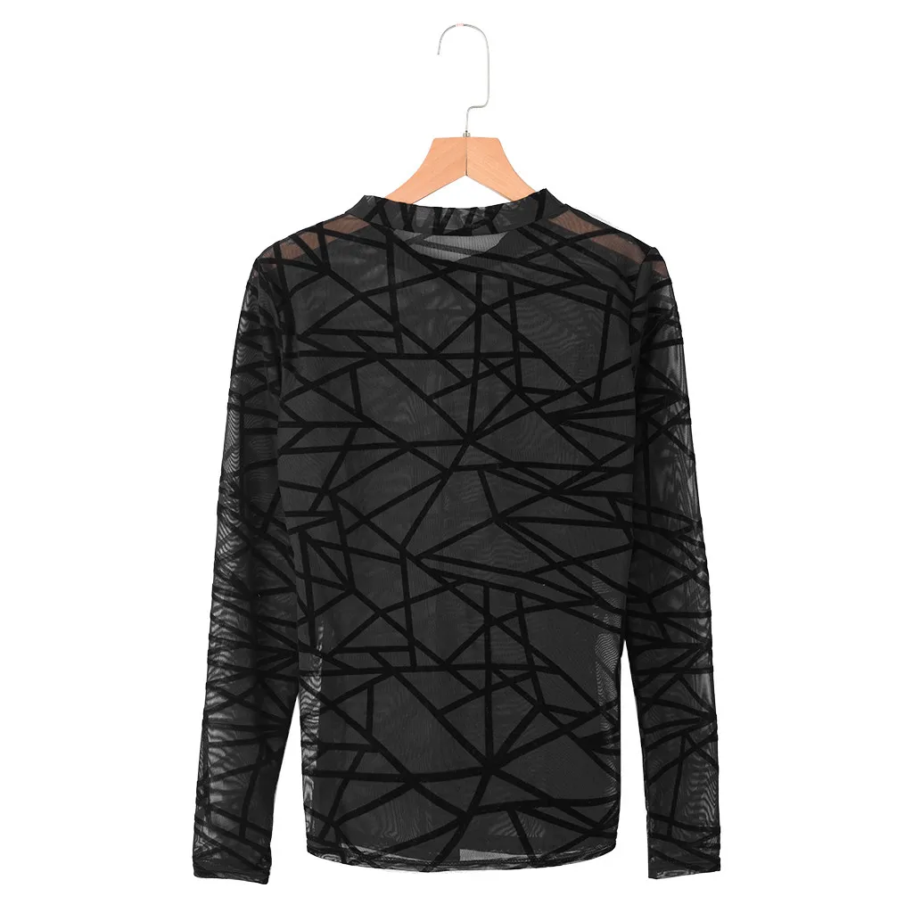 Sexy Women Blouses Transparent Mesh Long Sleeve Tops Tee