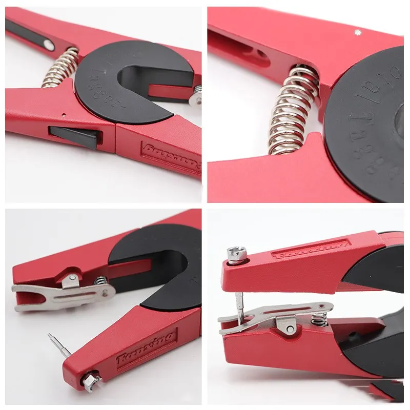 At its core, the tag applicator consists of two ergonomic handles joined by a pivoting hinge that drives a tag through the animal’s ear. A replaceable tag holder assembly and interchangeable tag pins ensure compatibility with common sheep tag sizes and styles, including visual plastic ear tags and RFID tag formats used in New Zealand livestock identification systems.
