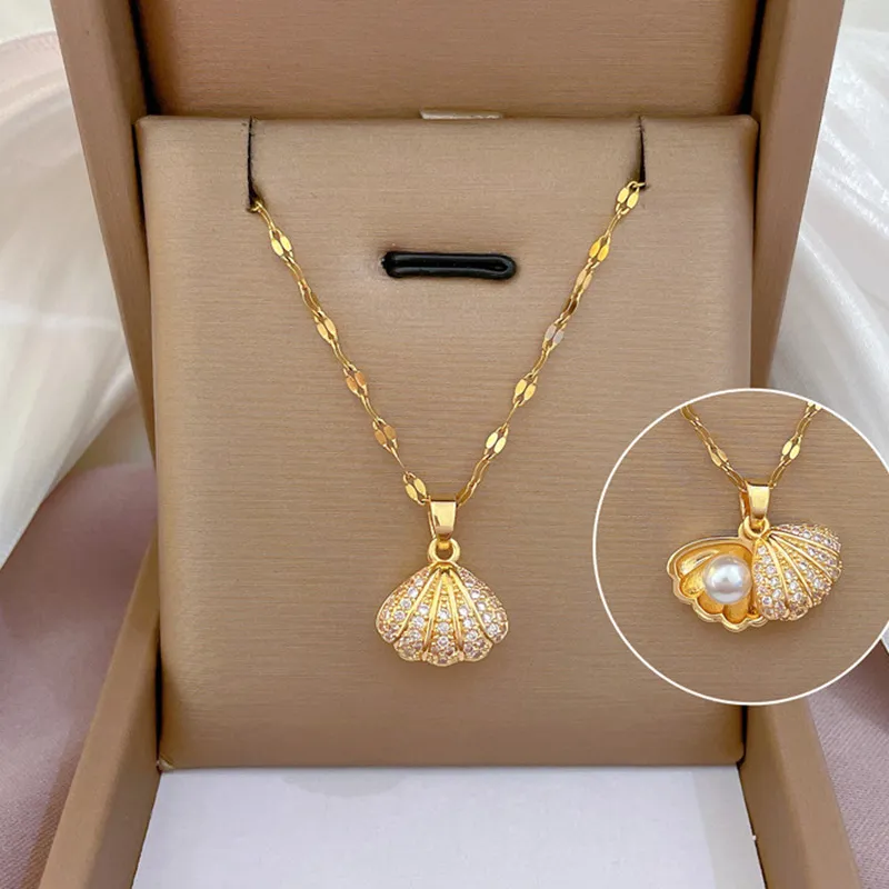 Shell Pearl Necklace With Rhinestones Female Zircon Temperament Personality Jewelry