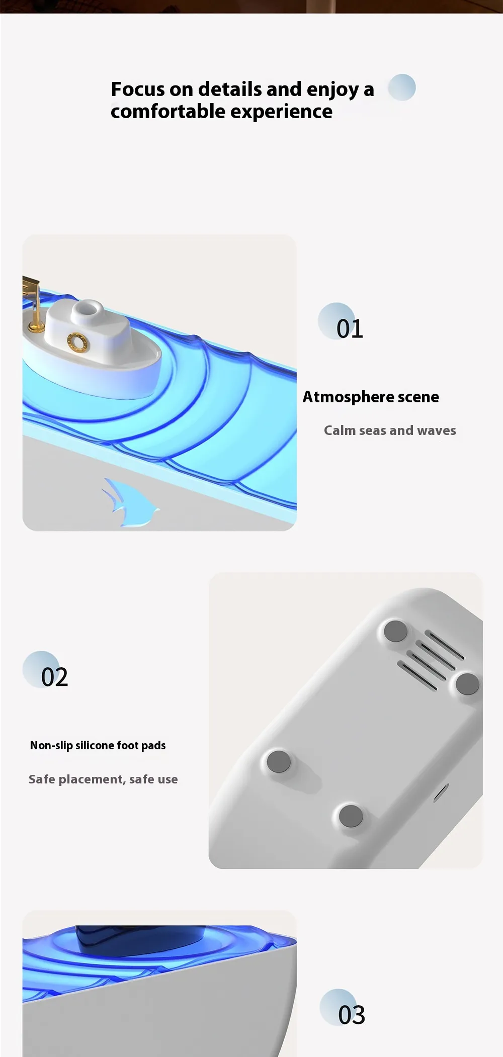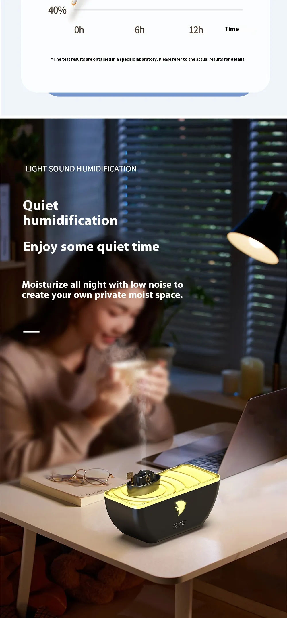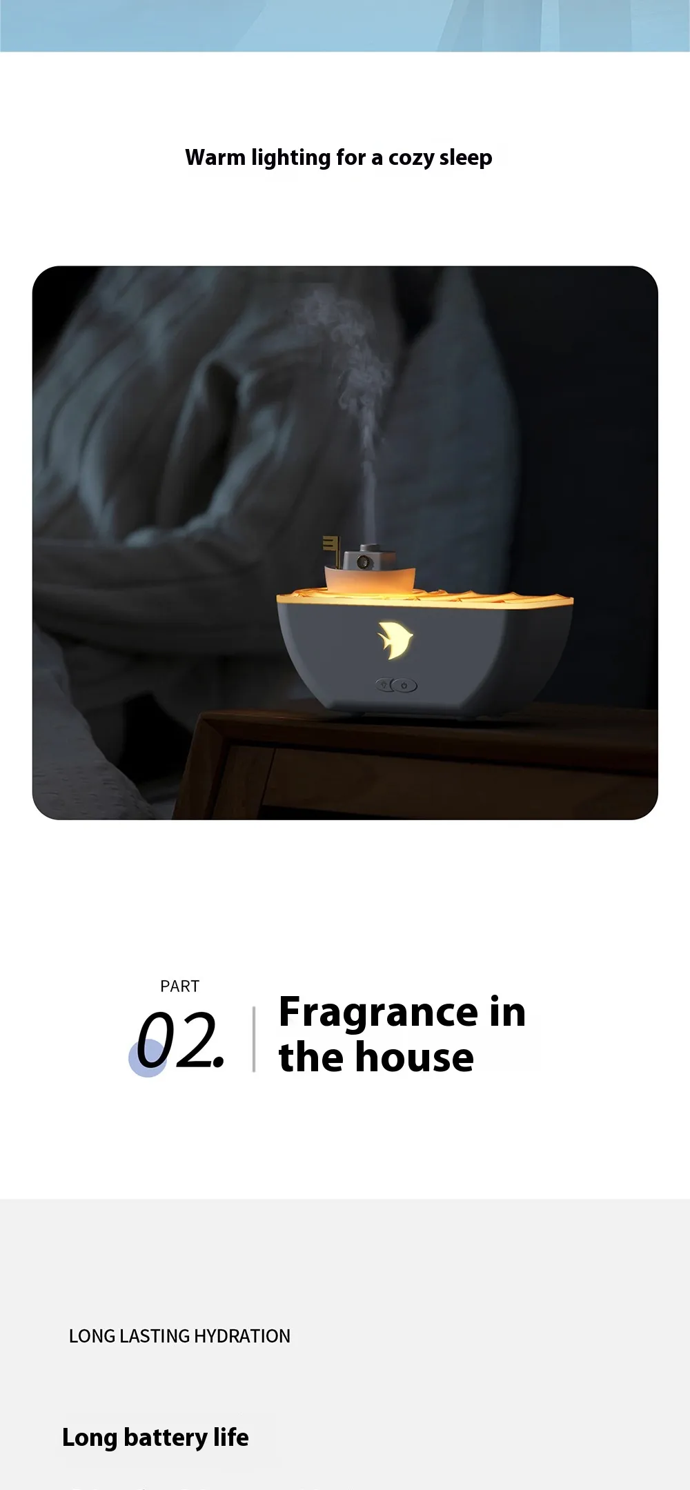The combination of calming light, pleasant aromas, and gentle humidification promotes mental well-being and reduces tension.