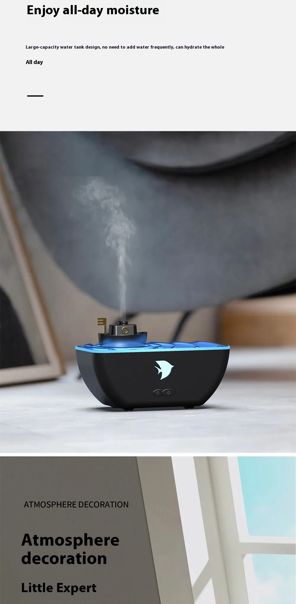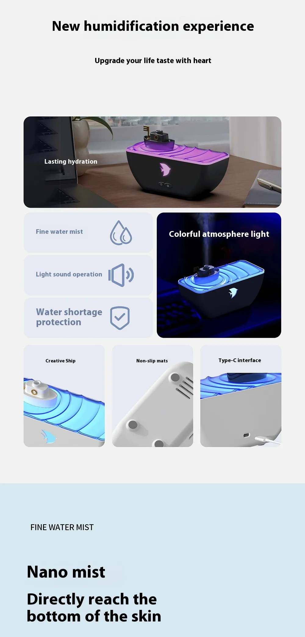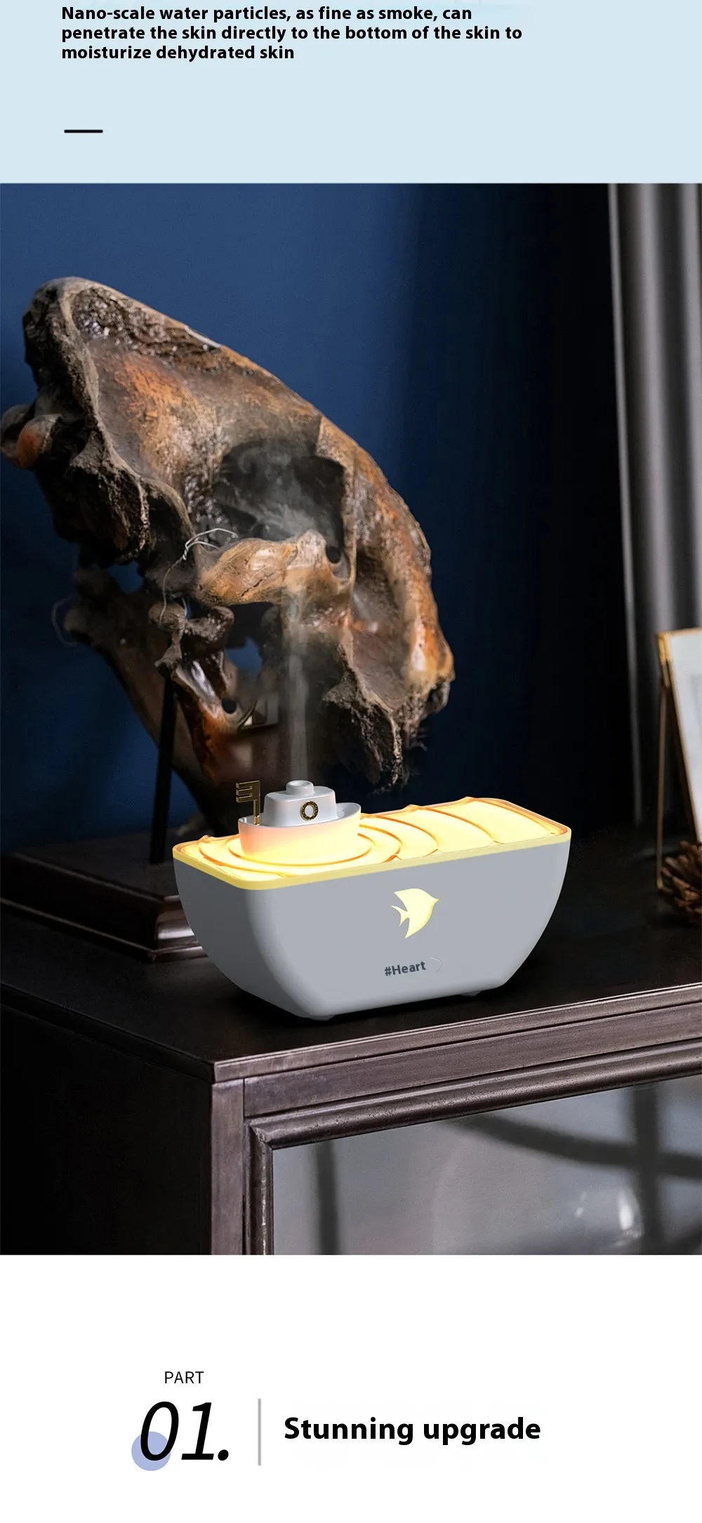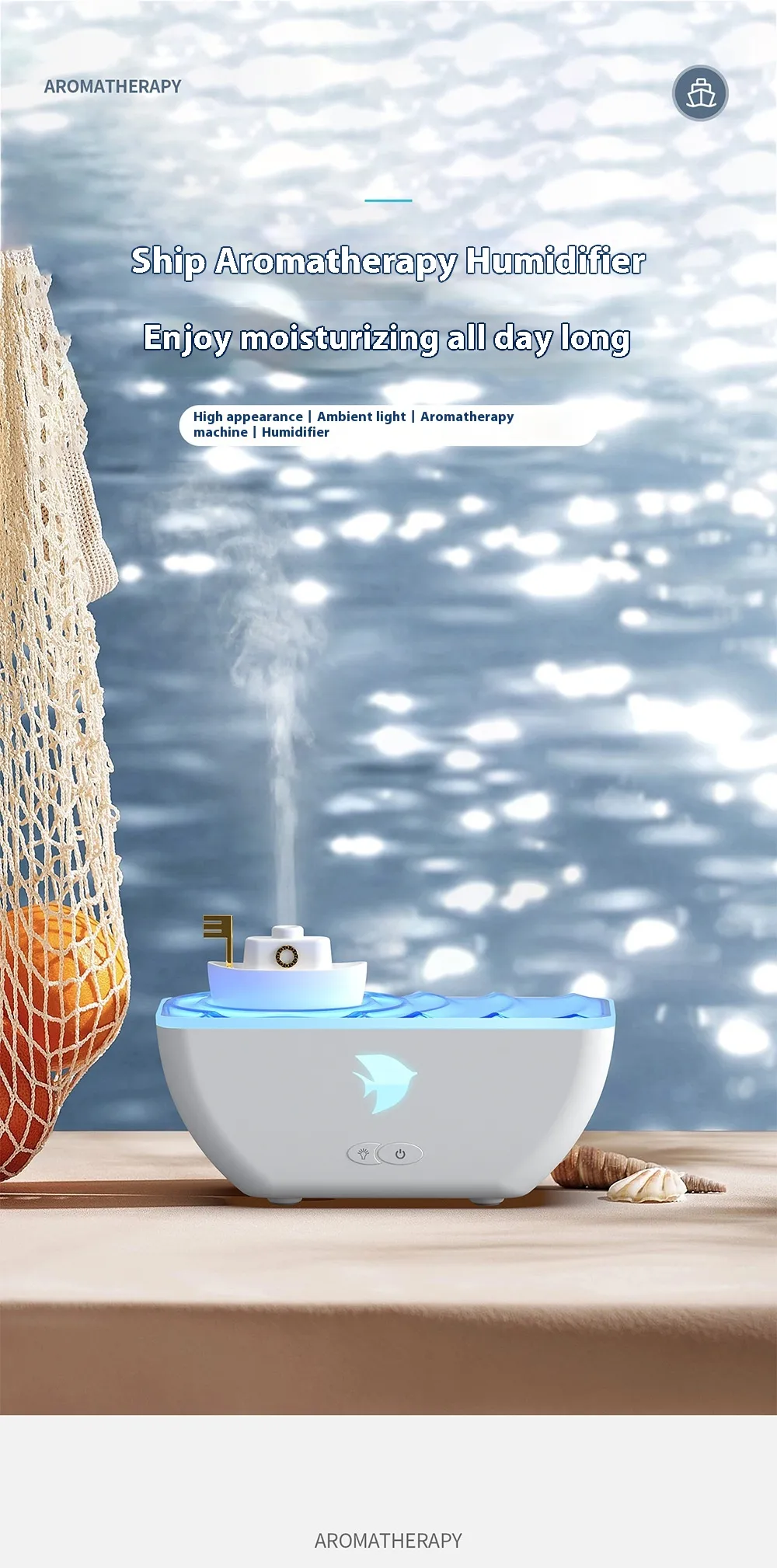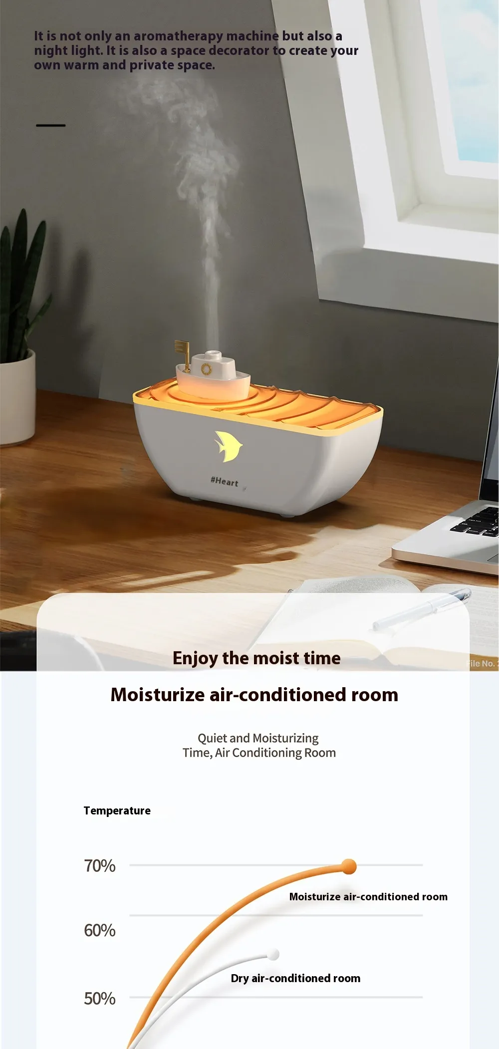 hydration, and aesthetic charm to your home or office. Designed with a sleek ship-inspired look, it doubles as an essential oil diffuser,