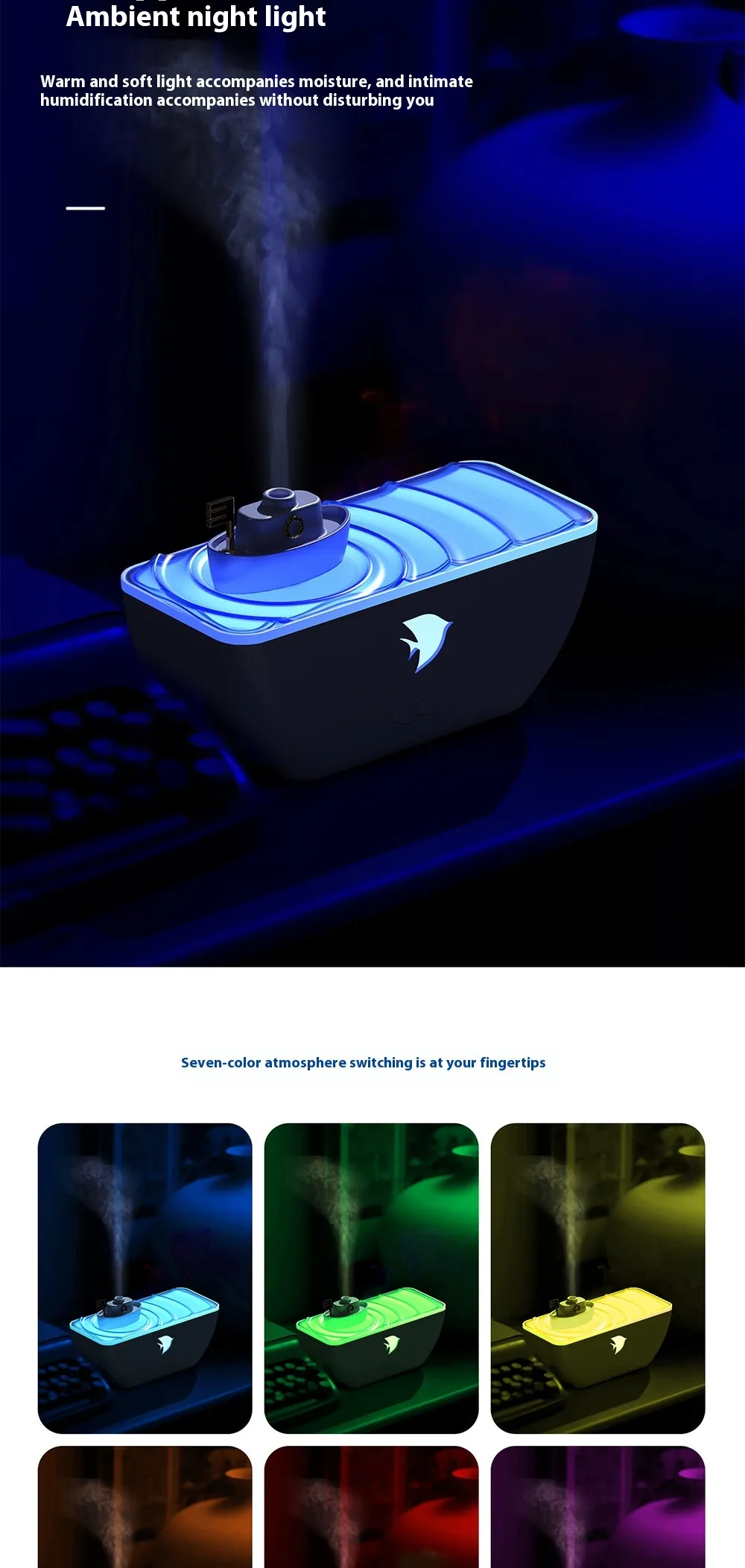 Key Features of the Ship Aroma Diffuser Gradient Colorful Night Lamp Humidifier