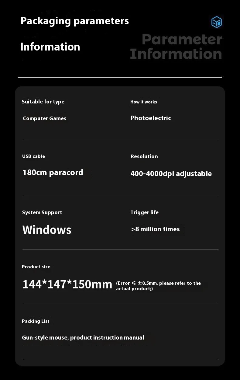 Equipped with a high-resolution optical sensor, this gun-style mouse ensures pinpoint accuracy and smooth tracking on any surface. Adjustable DPI settings (depending on the model) let you tailor sensitivity for fast movements or precise aiming—ideal for tactical shooters and action games.