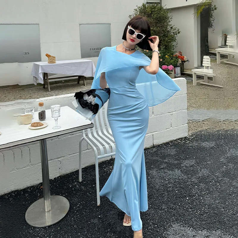 short fishtail dress, fishtail cocktail dress, short formal fishtail dress, short fishtail evening dress, figure-hugging fishtail dress, elegant fishtail dress, modern fishtail dress, mini fishtail dress, short fishtail gown, feminine fishtail dress