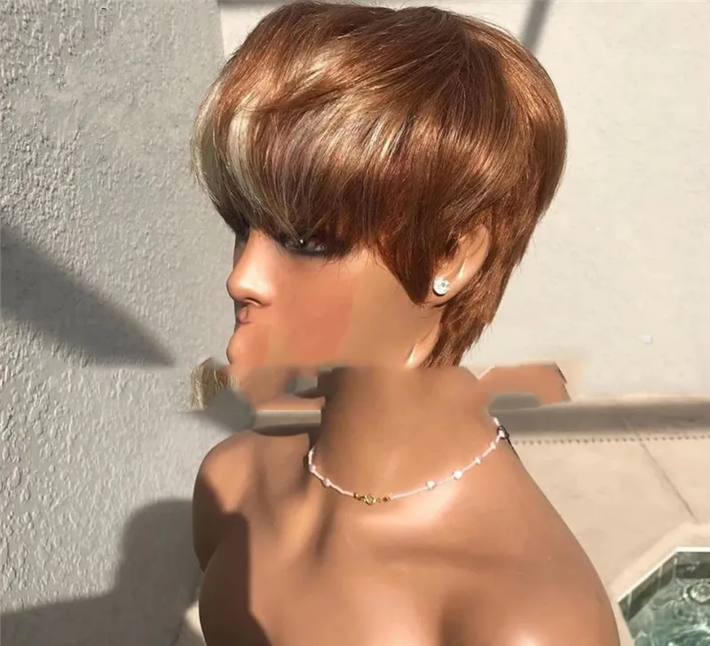 Short Hair Wigs, Brown Highlights, Golden Hair