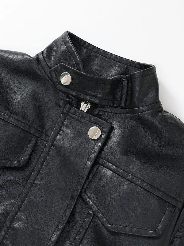 - Sleek and Modern Collar: The short stand collar gives this jacket a streamlined, edgy appearance.