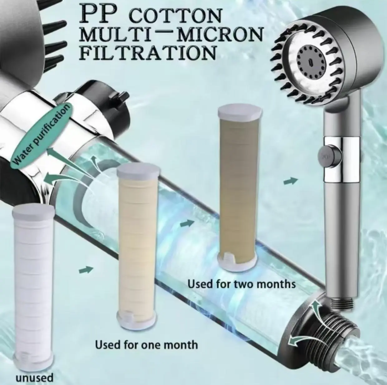 High pressure performance scalp massage shower brush: The turbo shower head can also provide strong and stable water flow. The scalp massage bath brush is made of elastic silicone. Enjoy a gentle and relaxing massage directly on the scalp without pulling your hair, providing a spa like experience in the comfort of a shower.Durable and long-lasting filter: This handheld shower head is equipped with a polypropylene cotton filter, which can effectively remove rust, dirt, and other deposits, ensuring a healthier shower. It is made of high-quality ABS plastic and chrome plated surface, and the ion shower drip head filter shower head is designed for daily use.