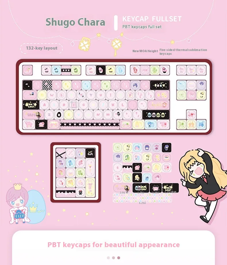 Shugo Chara Key Cap MOA Highly Personalized Theme Five-sided Sublimation Customized PBT Mechanical Keyboard Keycaps Key Cap