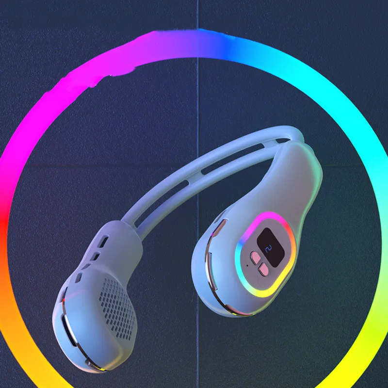 Silent Mini Usb Bladeless Ambience Light Hanging Neck Fan Summer Gadgets