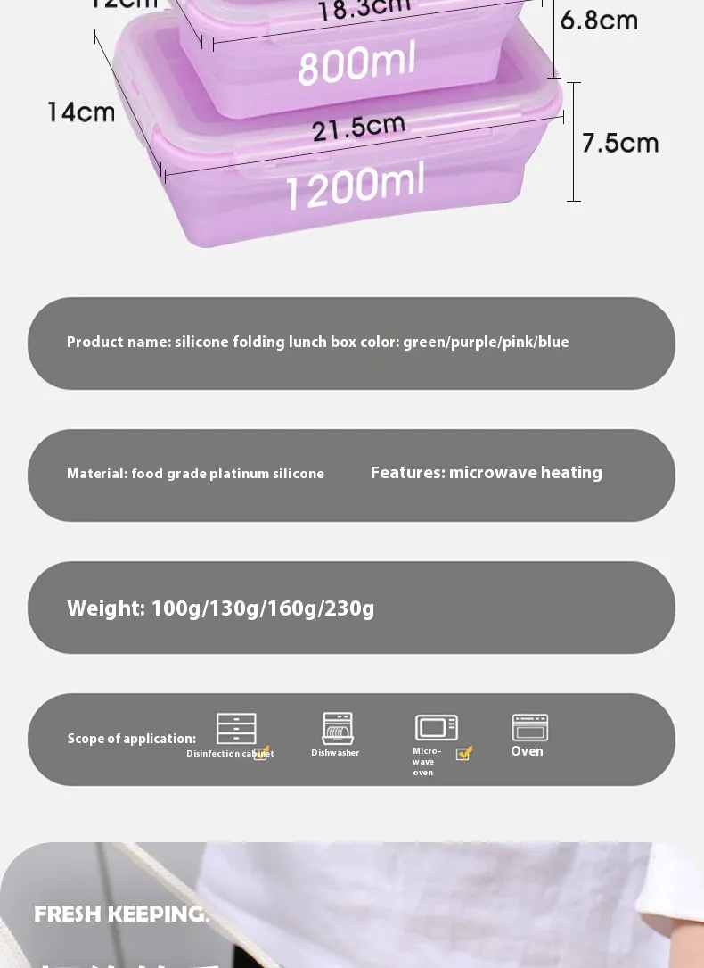 Specifications: folding lunch box blue four-piece set, folding lunch box pink four-piece set