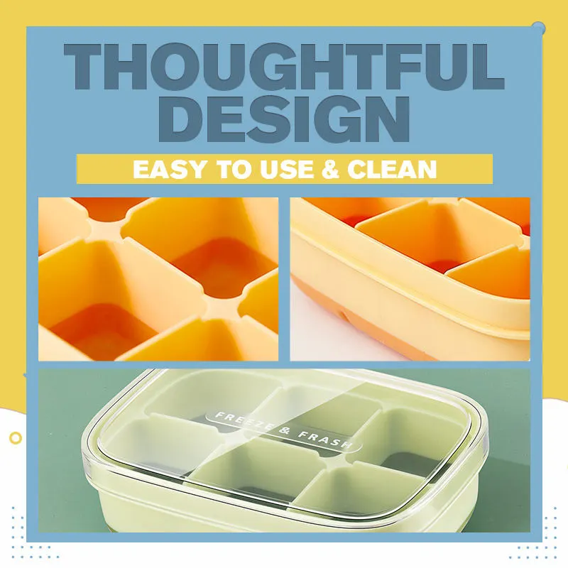 Silicone Ice Cube Mould with DIY Lid – 6 Grid Square Ice Cube Maker Tray